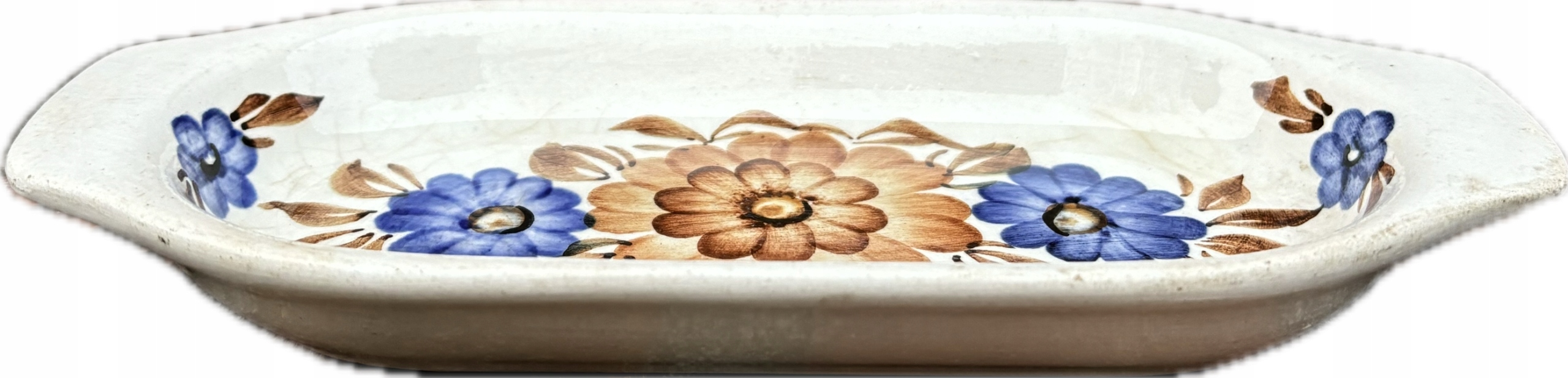 Факторский блюдо из круга 70/80 -х годов. Подписанный. Ручная рука. Размеры: ширина 20 x 9 x 2,5 см. Состояние показано на картинках. Следы использования, обесцвечивание, потрескавшаяся эмаль.