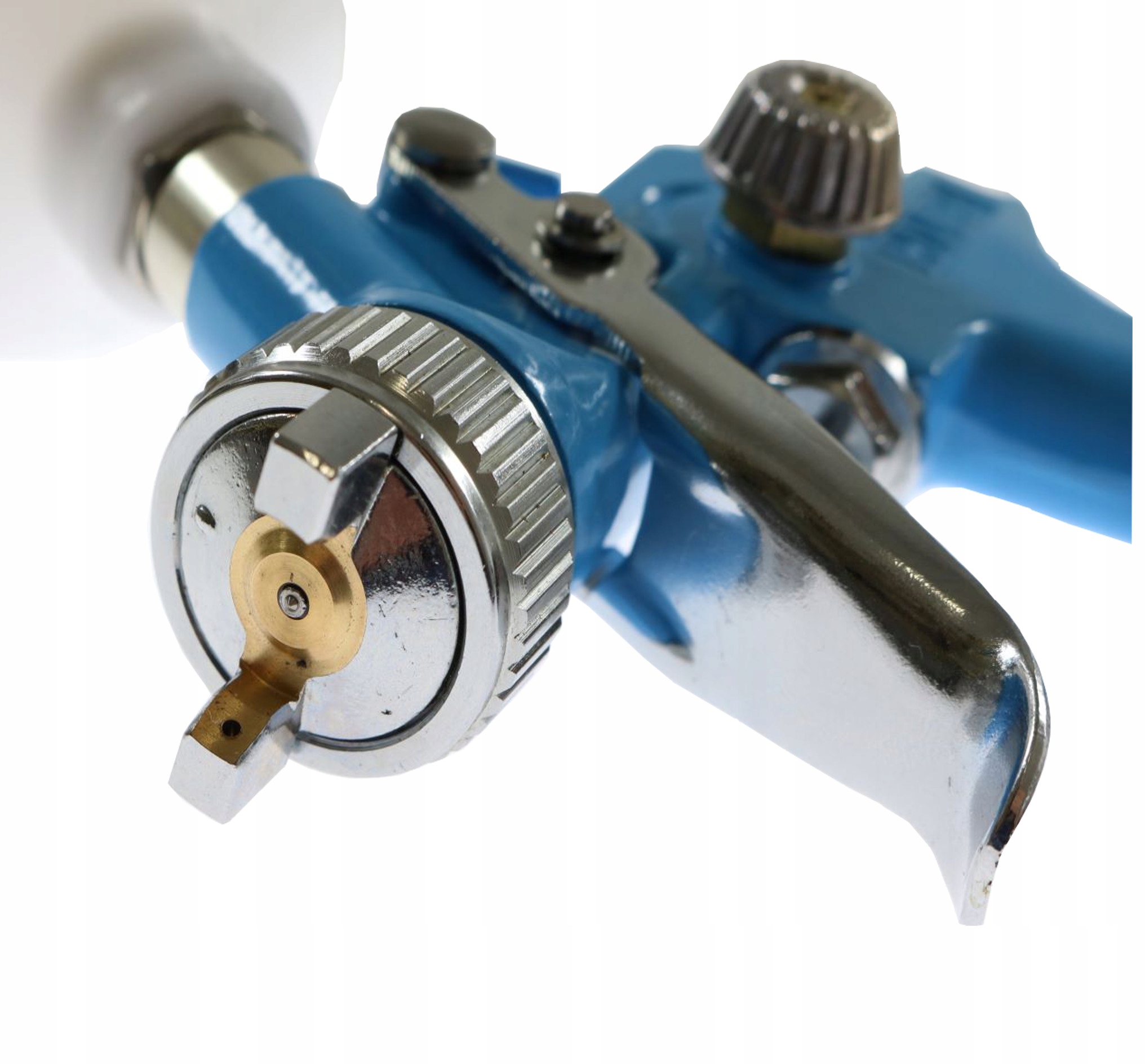 Он работает по принципу HVLP (большой объем при низком давлении), то есть распыляет краску или другую жидкость, помещенную в резервуар, в облако воздуха.