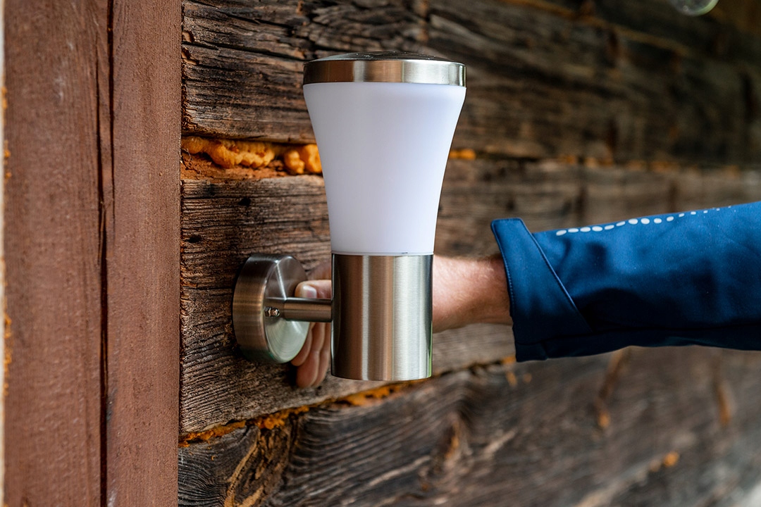Был сделан из погоды -резистентной нержавеющей стали, позволяющей -годовой операции . Это фасадная лампа, которая предлагает вечный, элегантный дизайн и современную световую раму. Имеет сертификат CE, ROHS и IP44