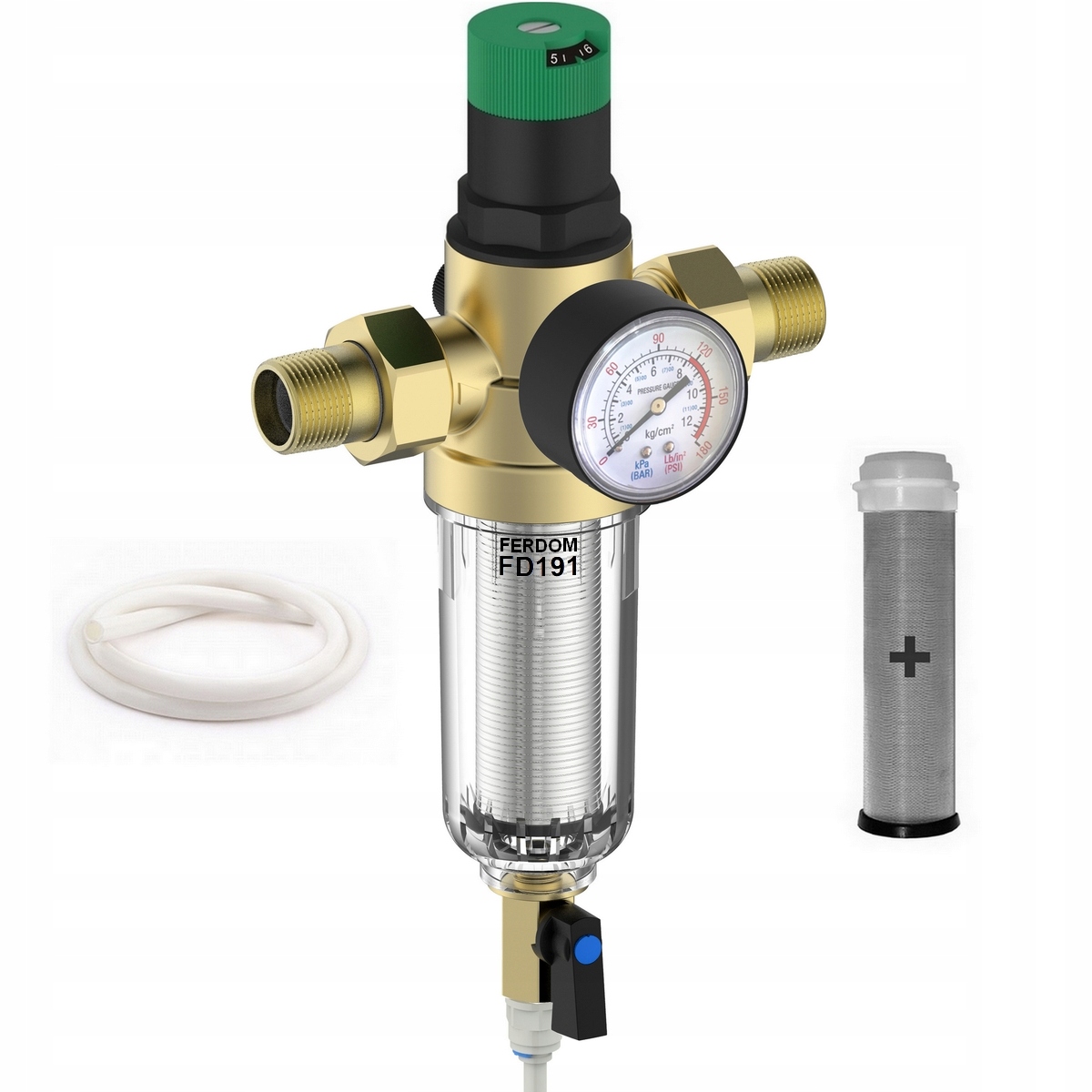 Встроенный -в предварительном фильтре в FD191 защищает домашние устройства. Открытие дренажного клапана, полившего вниз, очищает вставку и удаляет накопленные примеси, стекая в слив. Встроенный -в датчике давления указывает давление воды на выходе. FD191 Полная латунная конструкция Ferdom обеспечивает долгосрочную долговечность и безопасность использования. Для использования для питья или технической воды, из вашего собственного источника или из сети водоснабжения. Максимальный поток 2,5 м3 в час, достаточное даже для 2-3 дома. Максимальное давление на входе 16 бар / 1,6 МПа.FD191 FERDOD легко установить для установки воды и сточных вод G1 / 2 "или 3/4" (DN15 / DN20). Он имеет многократный фильтр из нержавеющей стали из -за прочной 90 м стельки из нержавеющей стали из нержавеющей стали из нержавеющей стали и воды, зависящей от качества воды. Еще одна запасная сетка включена. Доставлено с 12 бар / 160 фунтов на квадратный дюйм. и PTFE ленточный ролик для запечатывания водных соединений