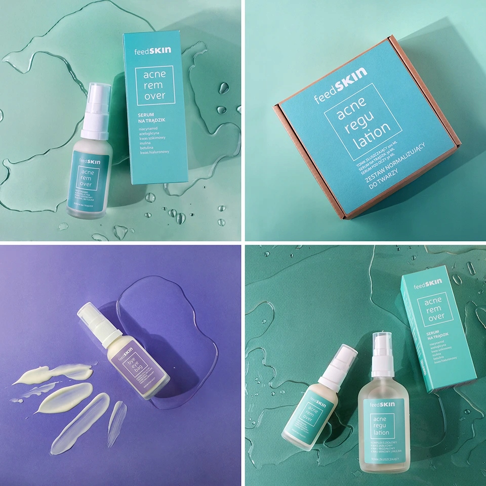 Набор для нормализации лица FEEDSKIN – это набор, который позаботится о вашем лице. Содержащиеся в нем косметические средства, такие как отшелушивающий тоник и сыворотка от прыщей, помогут бороться с несовершенствами. При регулярном использовании они также уменьшают видимость черных точек. Дополнительно в набор входит легкая сыворотка для глаз для ежедневного использования. Содержащийся в нем кофеин уменьшает темные круги и отеки под глазами, а остальные ингредиенты обеспечат правильное увлажнение и эластичность кожи под глазами.