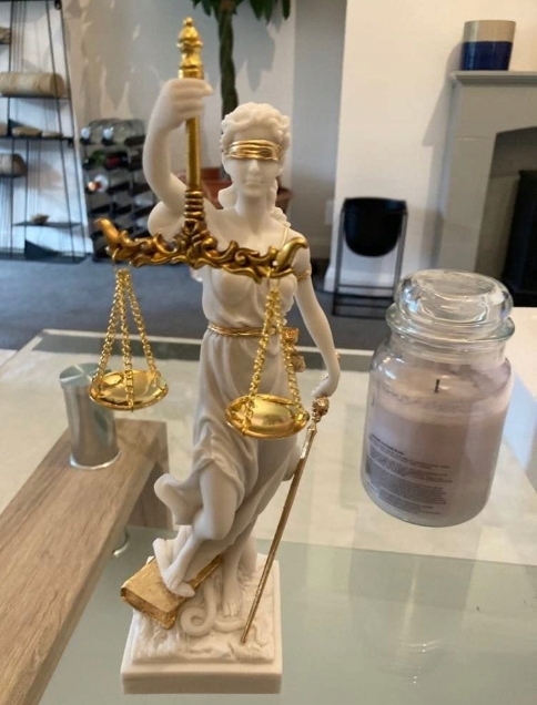 Вдохновением для создания этой статуэтки послужила греческая богиня правосудия, держащая в руках уравновешенные весы правосудия и меч, позволяющий ей отделить правду от вымысла.