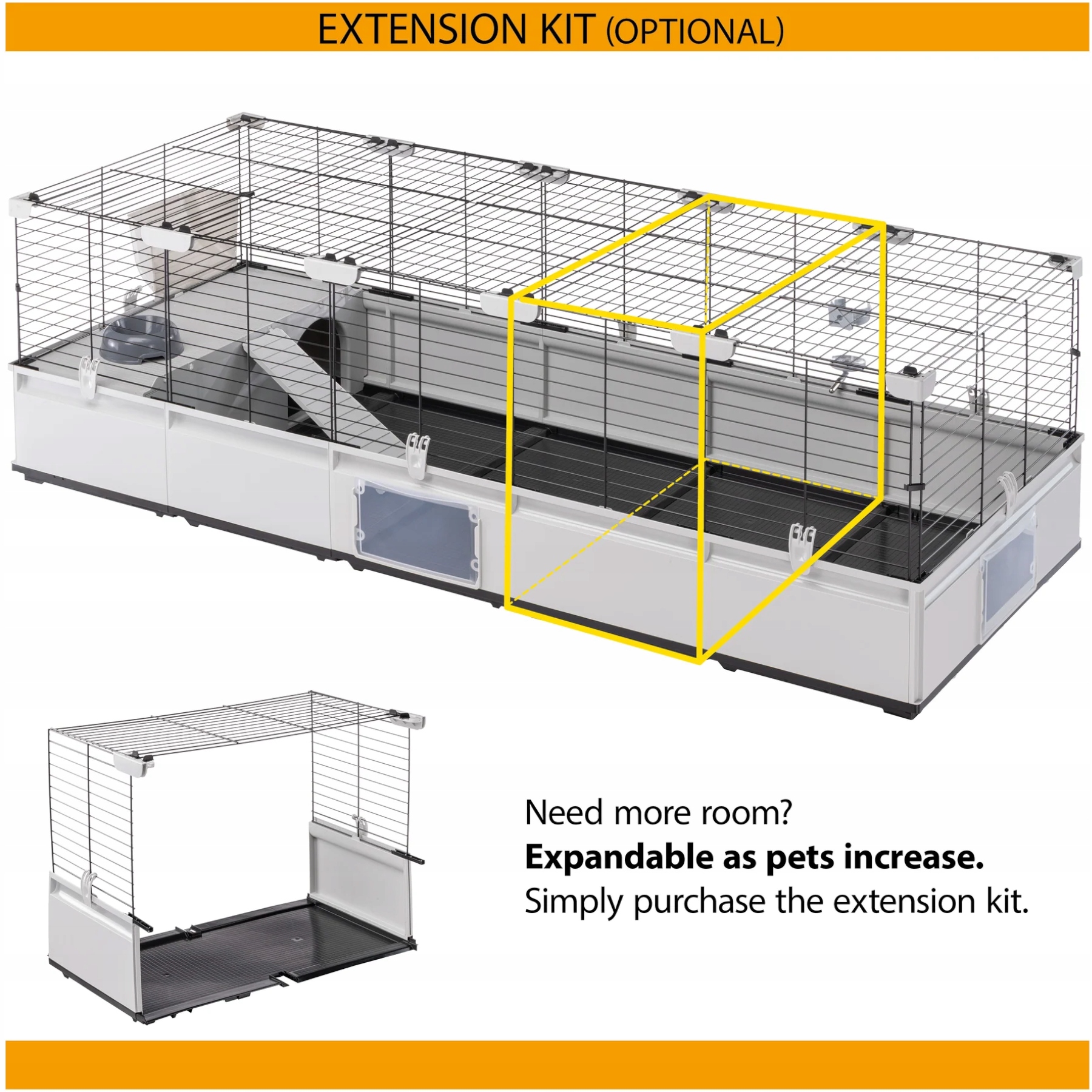 Модульные 2 кролика и морские свинки обеспечивают 0,78 квадратных метров жизненного пространства, функционально и удобно для ваших друзей, в комплекте с аксессуарами, такими как бутылка для питья, чаша для пищи, кормление сена и большая розетка с лестницей. Эта модель совместима со всеми модулями и дополнительными аксессуарами с Serii Modular. Вы можете купить дополнительный дверный модуль, который позволяет вам создать дополнительную отправную точку, если это необходимо, или соединить несколько кадров вместе.