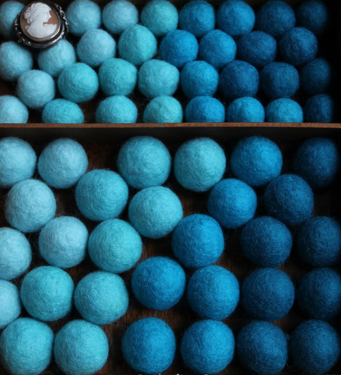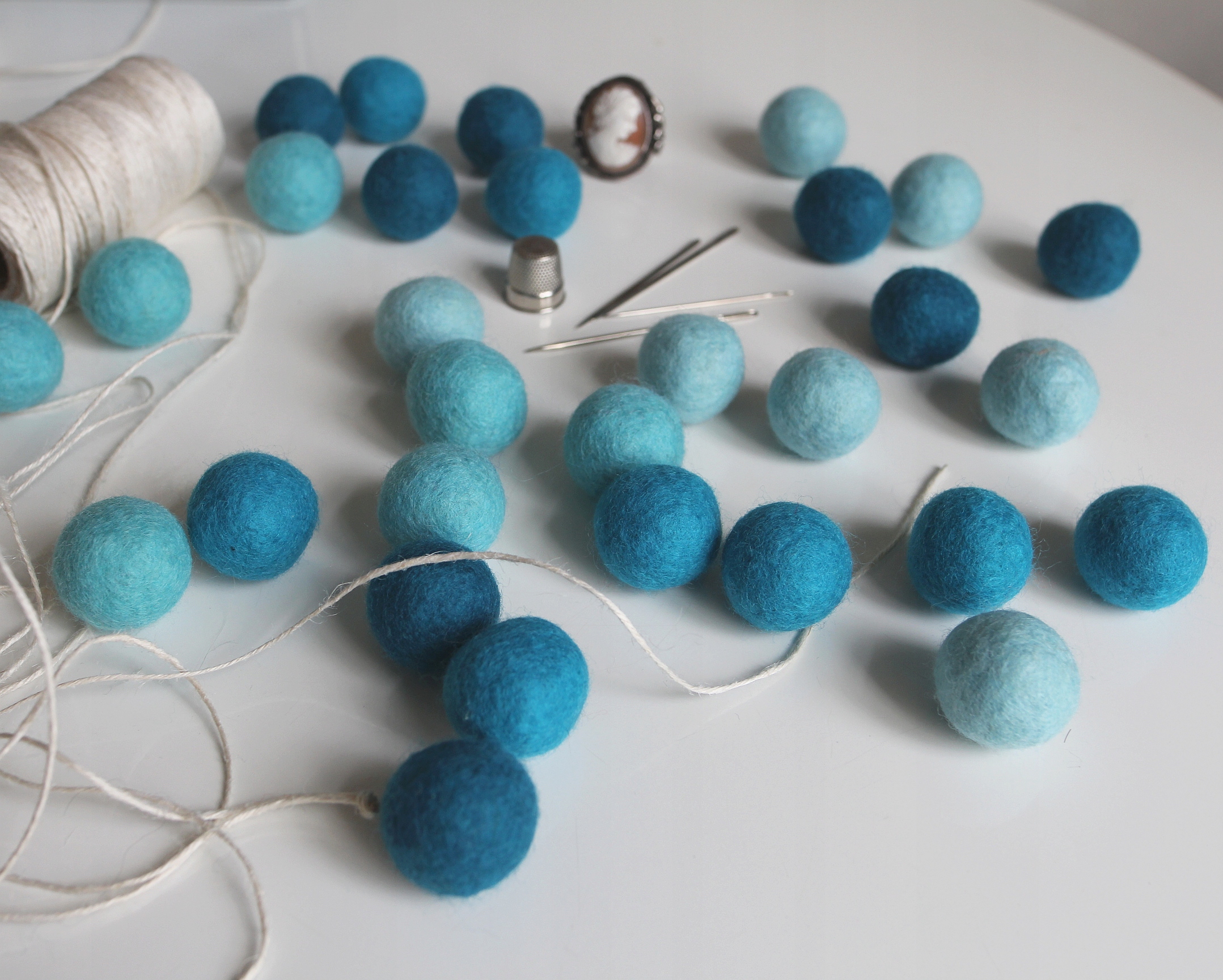 Фетровые шарики 10 шт., синие бусины по 2 см.