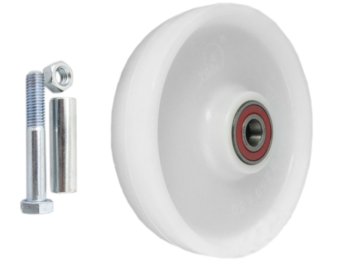 Полиамидное колесо изготовлено методом впрыскивания полиамида PA 6, который идеально подходит для изделий с высокими требованиями к долговечности. Корпус колеса однородный, натурального цвета (белый). Колесо имеет низкий коэффициент трения и высокую термостойкость. Допустимая температура длительной эксплуатации от -20 до +80°С. Колесо устойчиво к трещинам, не повреждает поверхность, поглощает шум и удары. Характеризуется длительным сроком службы, очень низким сопротивлением качению и устойчивостью к воздействию многих агрессивных химикатов.