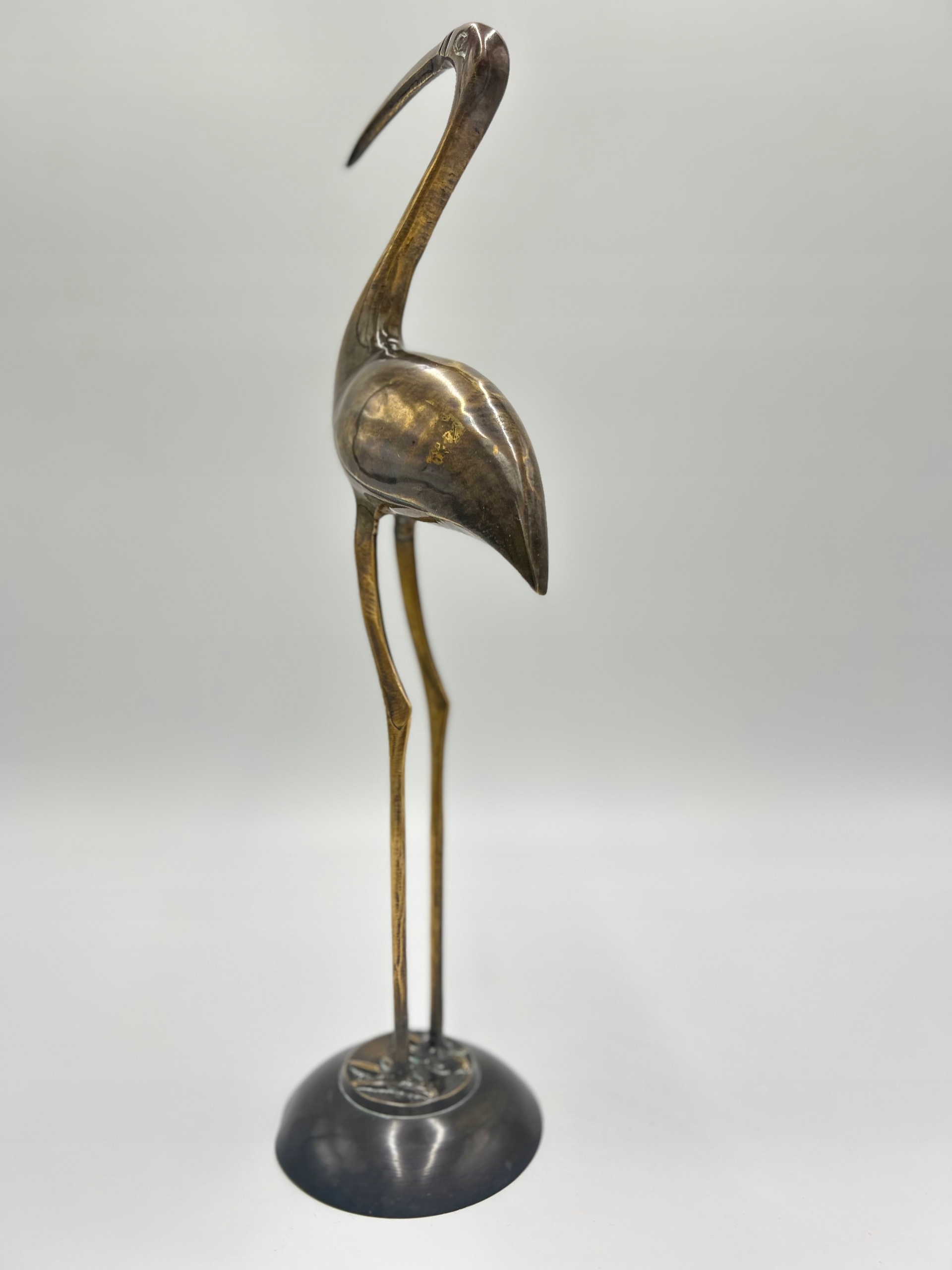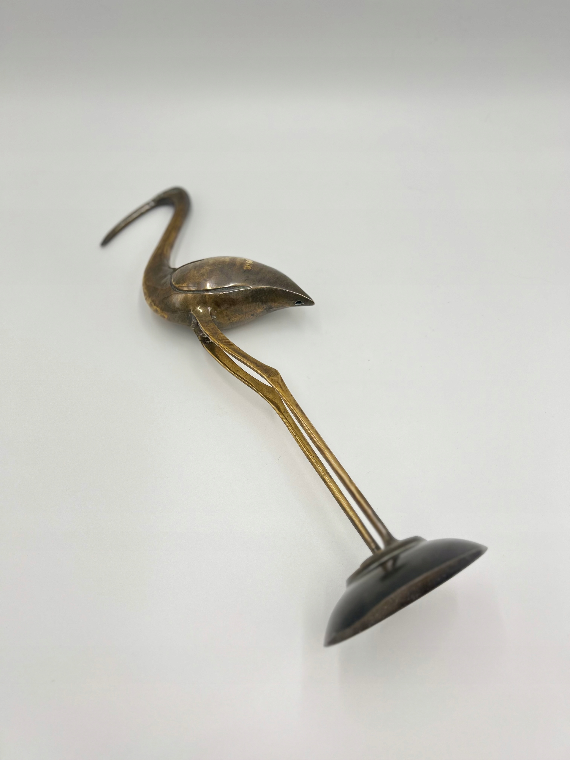 Тема продажи - высокая фигура из латуни, изображающая птицу - шляпу.