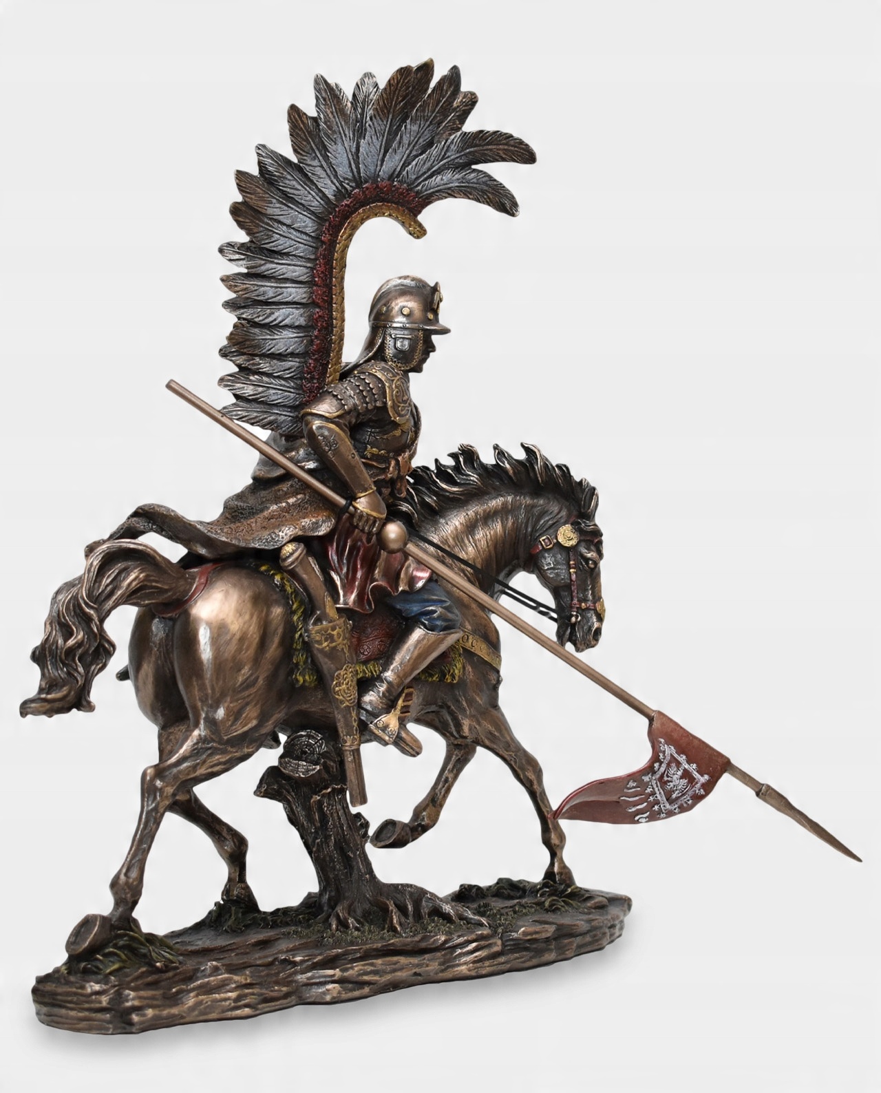 Красивая, реалистичная скульптура, изображающая польского гусара – легендарного воина верхом на коне. Сделано очень точно, с вниманием к мельчайшим деталям. Он производит большое эстетическое впечатление и имеет вневременной стиль. Подходит для многих интерьеров.