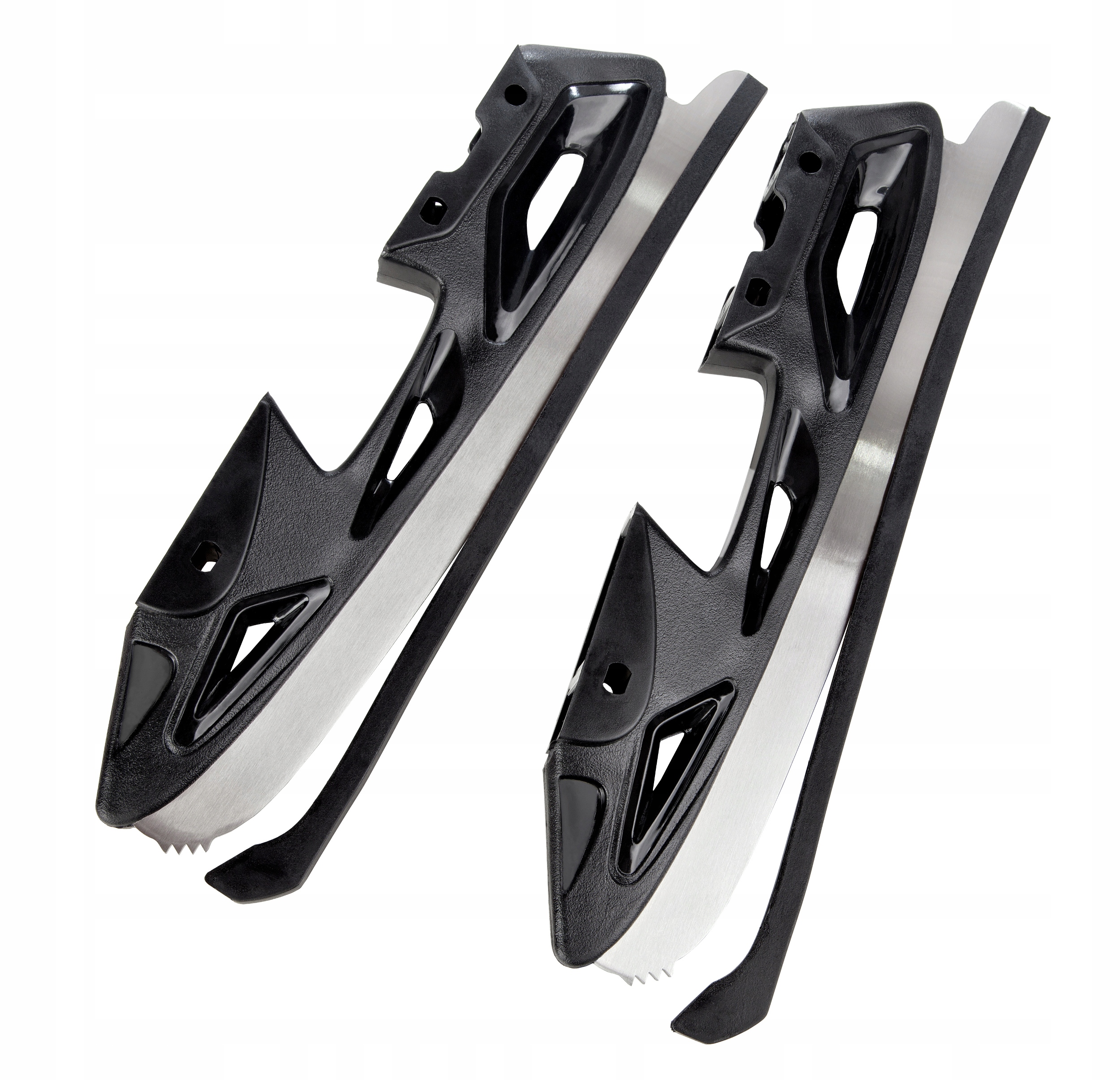 В комплект входят чехлы на стальную часть конька (на фото) и ключи, позволяющие самостоятельно заменить коньки.