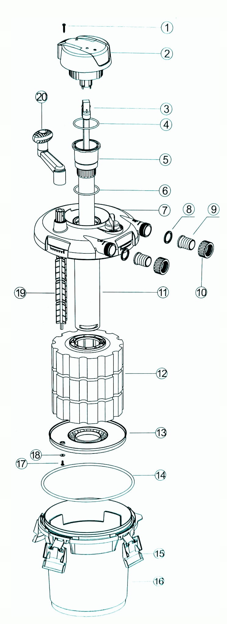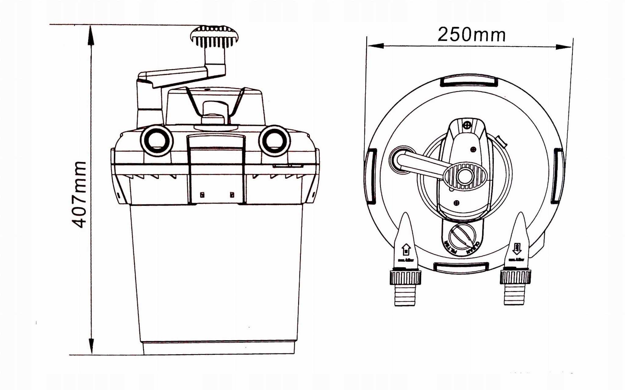 Фильтры серии CPF имеют функцию самоочистки, т.е. очищают фильтрующие картриджи без их снятия. Подсоедините сливной шланг, переключите фильтр в режим очистки и поверните ручку, расположенную на крышке фильтра. Грязь, осевшая на губках, удаляется обратным движением воды. Загрязнения не попадают в пруд, но вы можете использовать воду, например, для полива сада.