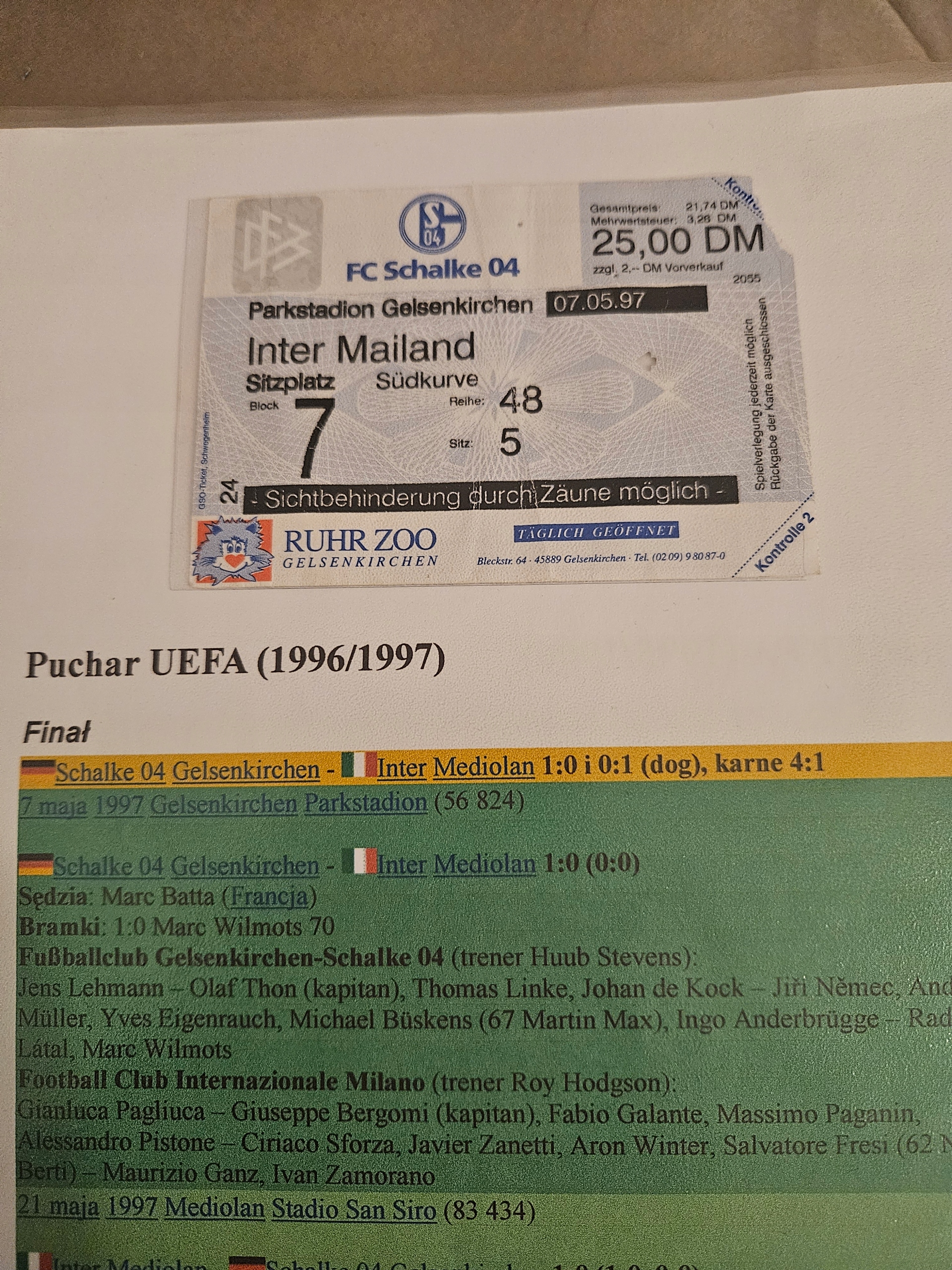 Заказывая «Finał Pucharu UEFA 1997 Schalke Gelsenkirchen- Inter Mediolan», вы можете быть уверены, что данное изделие из каталога «Футбол» вы получите через 5-7 дней после оплаты. Товар будет доставлен из Европы, проверен на целостность, иметь европейское качество.