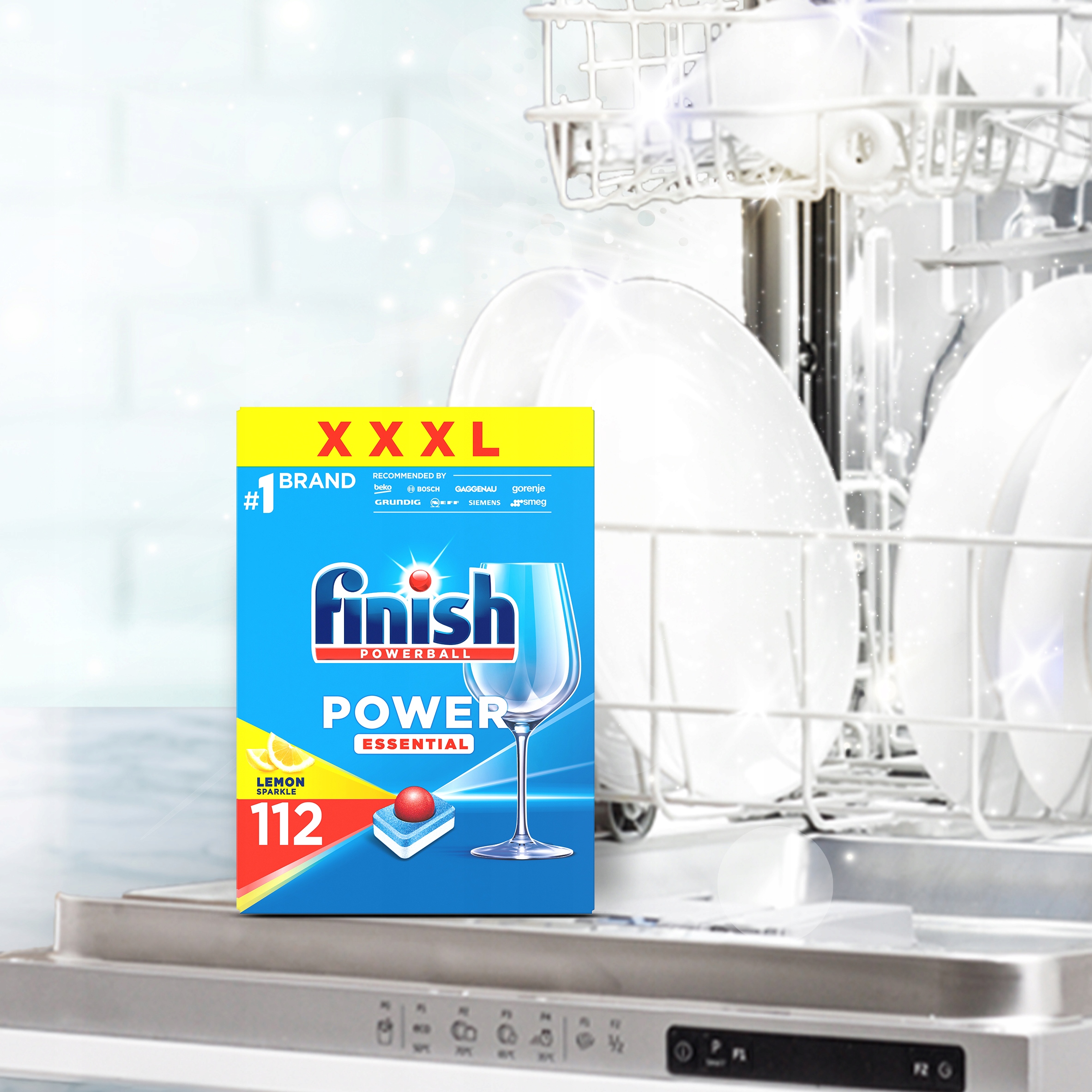 Finish Power Essential Lemon — это многофункциональные таблетки для посудомоек b> которые работают в шести регионах. Они не только имеют функцию предварительного замачивания и эффективно очищают посуду, но также удаляют сложные загрязнения, такие как семена от чая или жировых пятен.