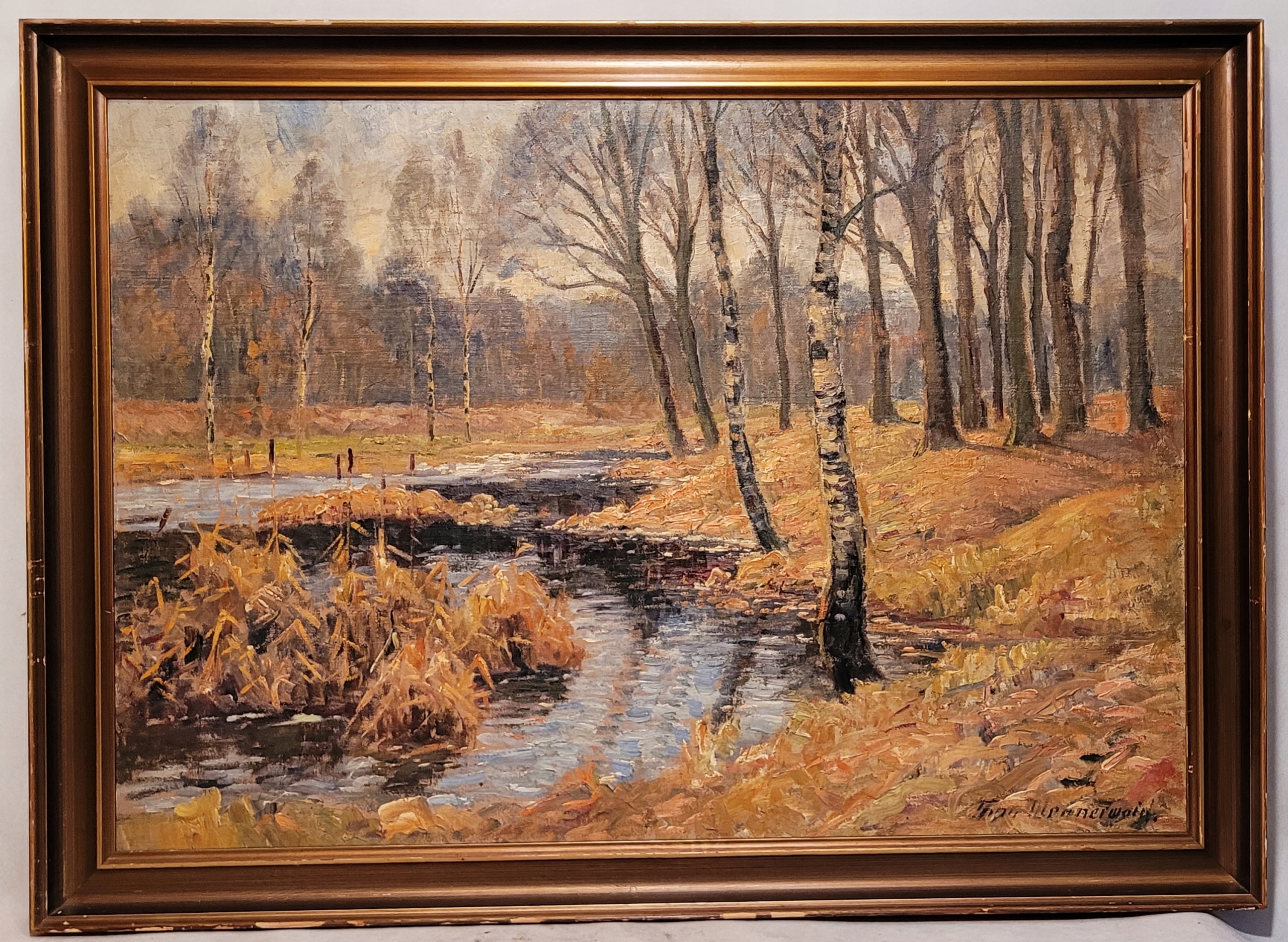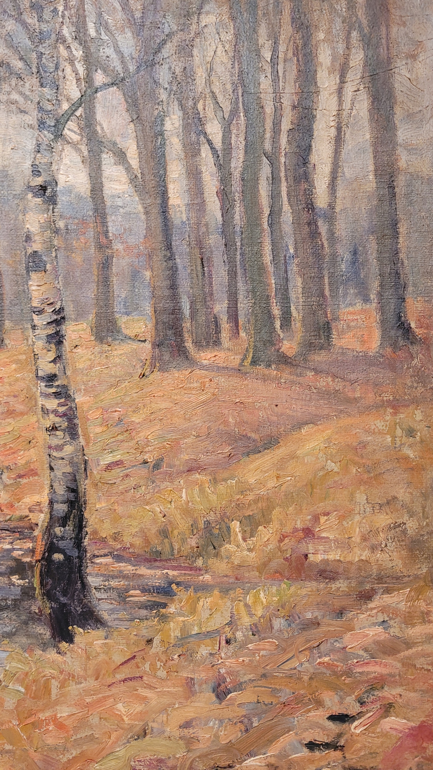 Финн Веннервальд (1896 - 1969) - «Лесной пейзаж», старая нефтяная картина.
