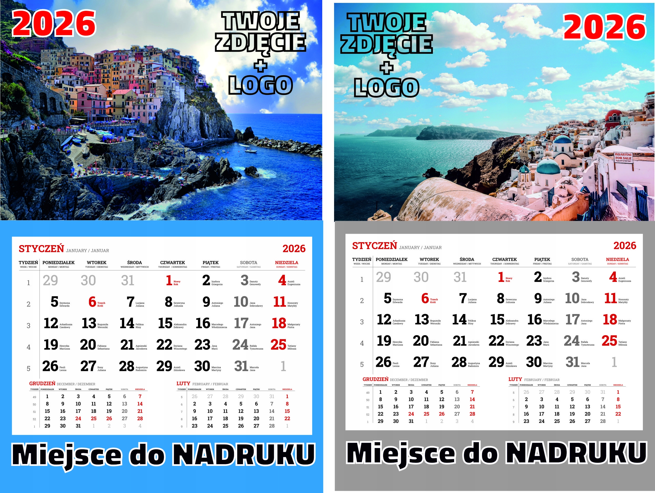 ФІРМОВИЙ ОДНОРОЗДІЛЬНИЙ календар 2026 з власним ПРИНТОМ + ЛОГОТИП - 100 шт