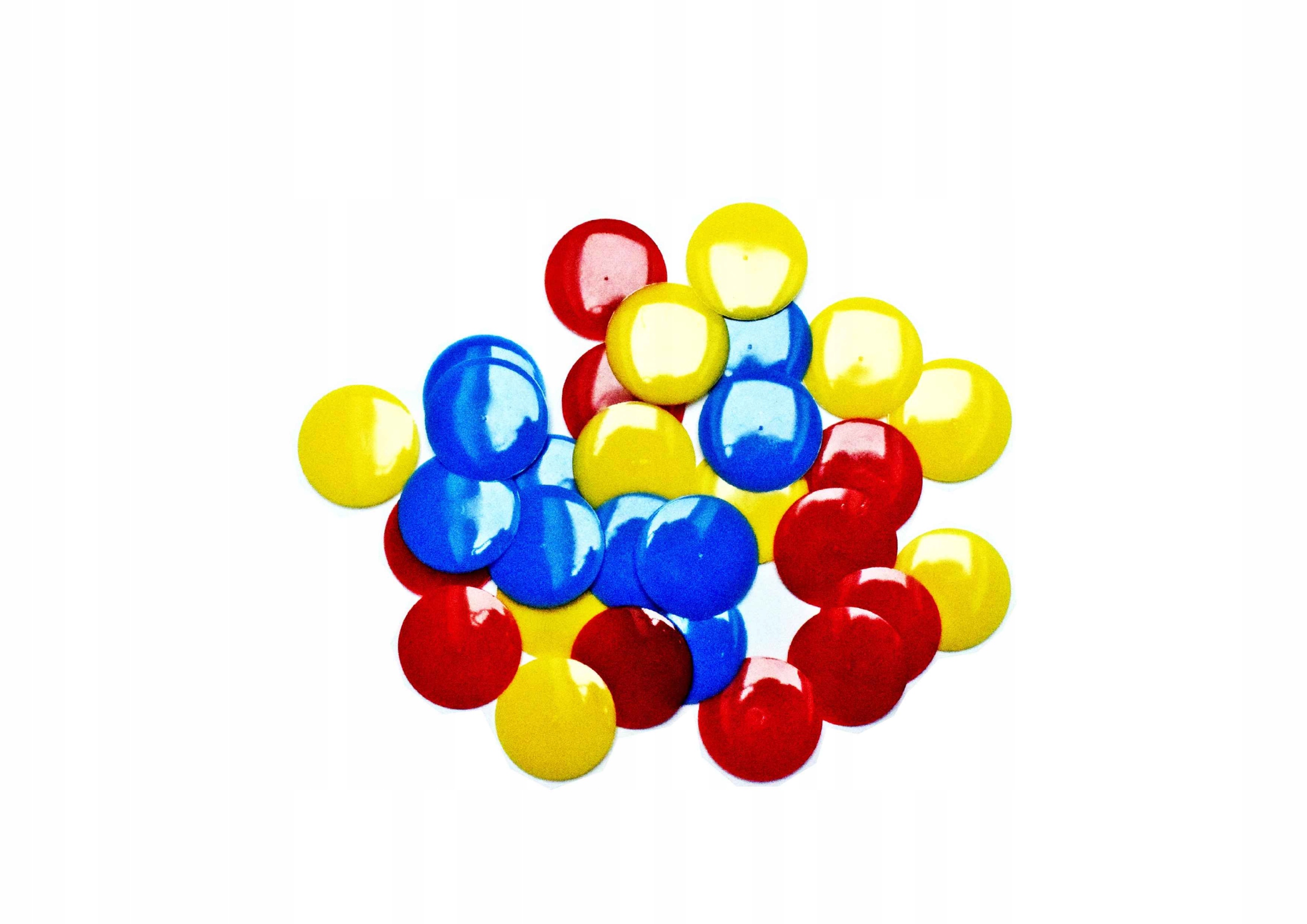 Набор из 30 жетонов для книги «Настольные игры «Весёлая грамматика»» (3x10 штук желтого, синего и красного цветов).