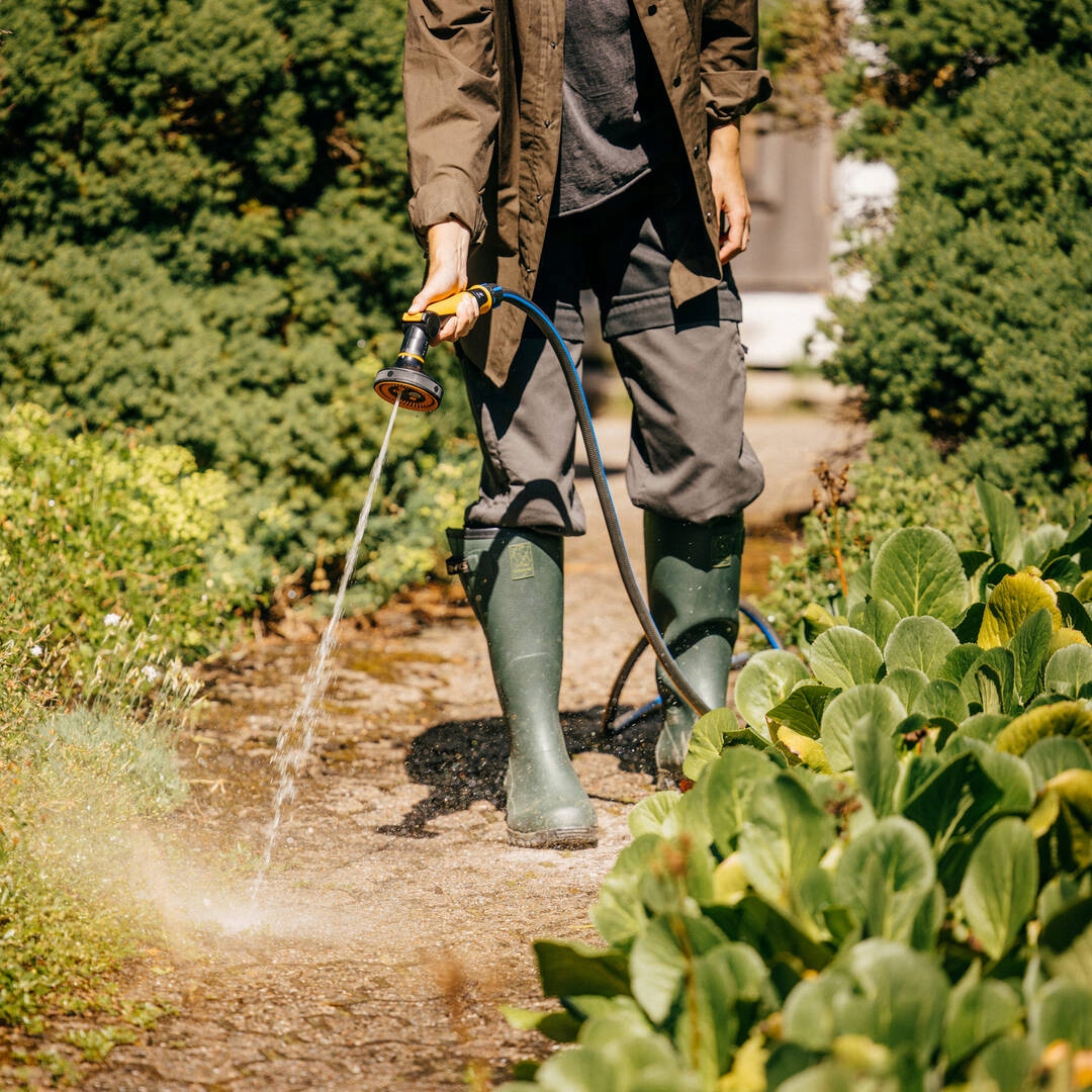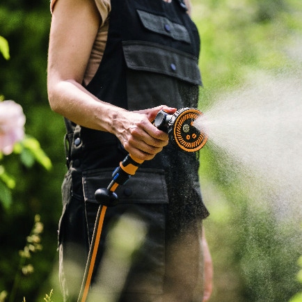 , оснащенный пятью регулируемыми режимами душа, работает как во время нежного распыления молодых растений, так и интенсивного полива более крупных поверхностей.