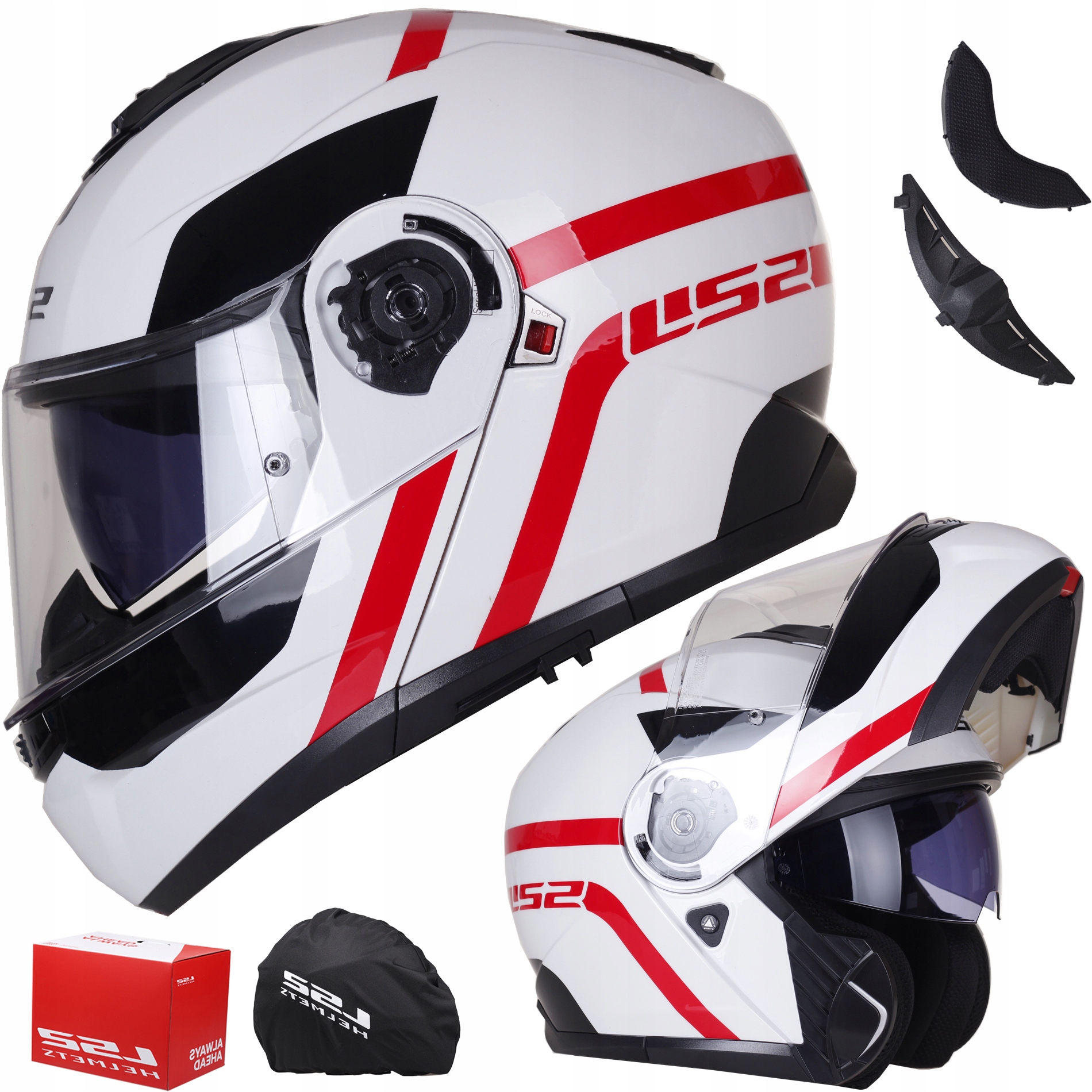 FIT HELMET LS2 FF908 STROBE II AUTOX білий червоний ECE 22.06 PINLOCK SYSTEM