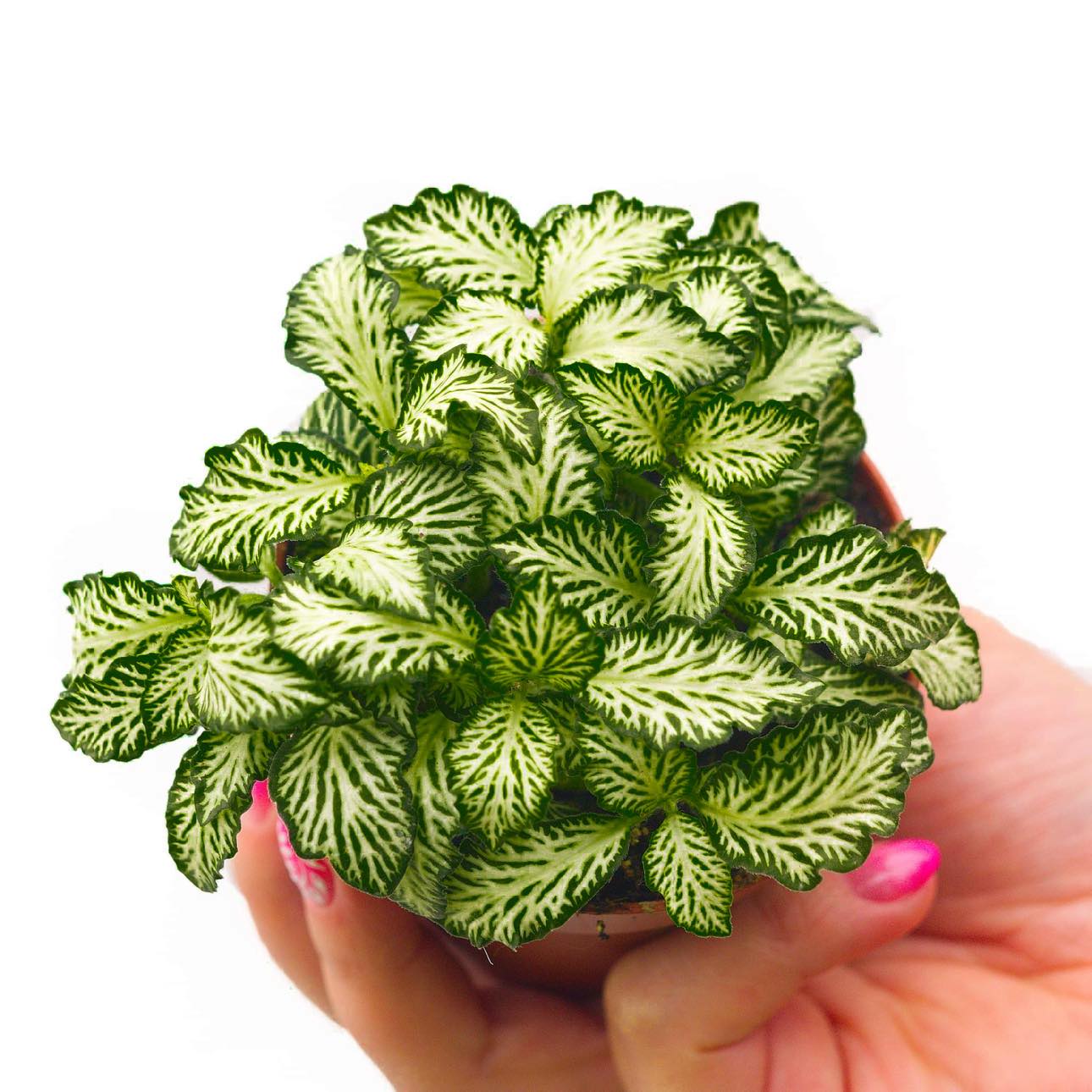 fittonia -а цветущего растения в природе, выращивающем во влажных лесах в северо-западной части Южной Америки. Филтоны - это небольшие ползучие многолетники, они достигают всего 20 см в высоту. Они быстро растут, создавая необычные красочные участки. Они обязаны своей декоративностью красивым, многополосным листьям с чистой, контрастной иннервацией. В зависимости от разнообразия, Fitonton может принимать цвета от белого и зеленого до красных и розовых оттенков. Из -за его небольшого размера он идеально подходит в качестве украшения подоконника, стола, а также в качестве растения, выращенного в банке. Иннервация листьев явно белые и зеленые цвета образуют лишь небольшие пятна на лезвии листьев и явно отмечают его край