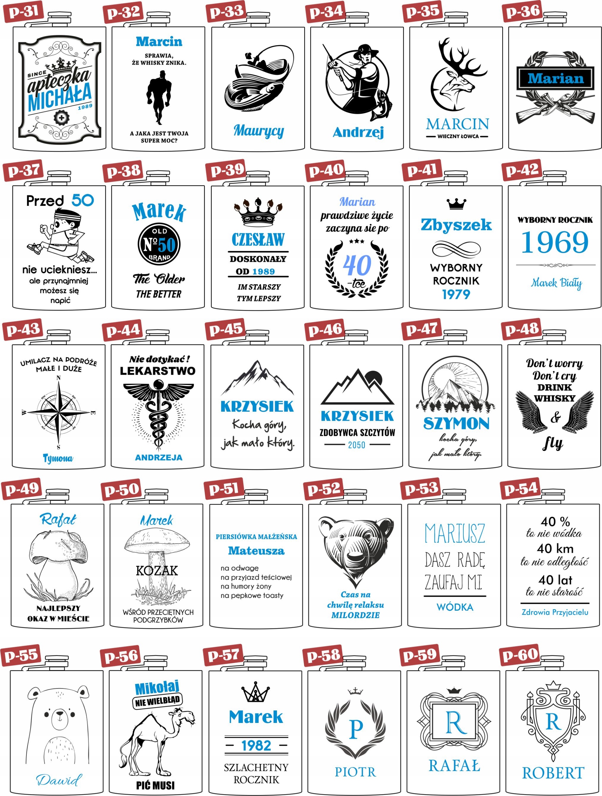 укажите номер дизайна (расположенный в верхнем левом углу каждого дизайна), который вы выбираете для фляжки, а также текст, который будет выгравирован на конкретном дизайне.