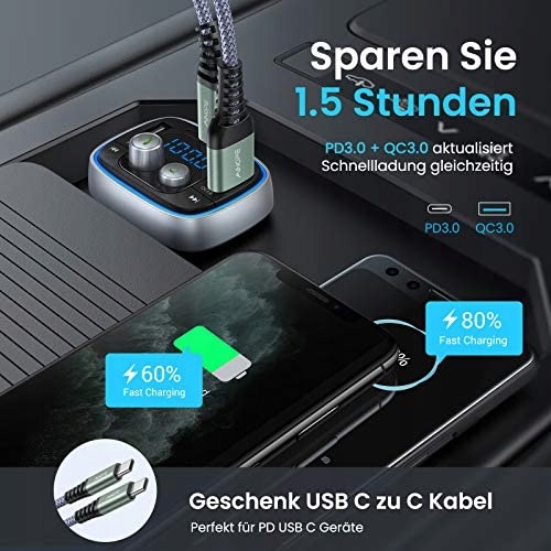 - 36 Эффективная зарядка PD и QC: автомобильный адаптер Bluetooth AINOPE может заряжать два устройства одновременно и быстро благодаря портам PD3.0 и QC3.0 ( общая мощность 36 Вт).