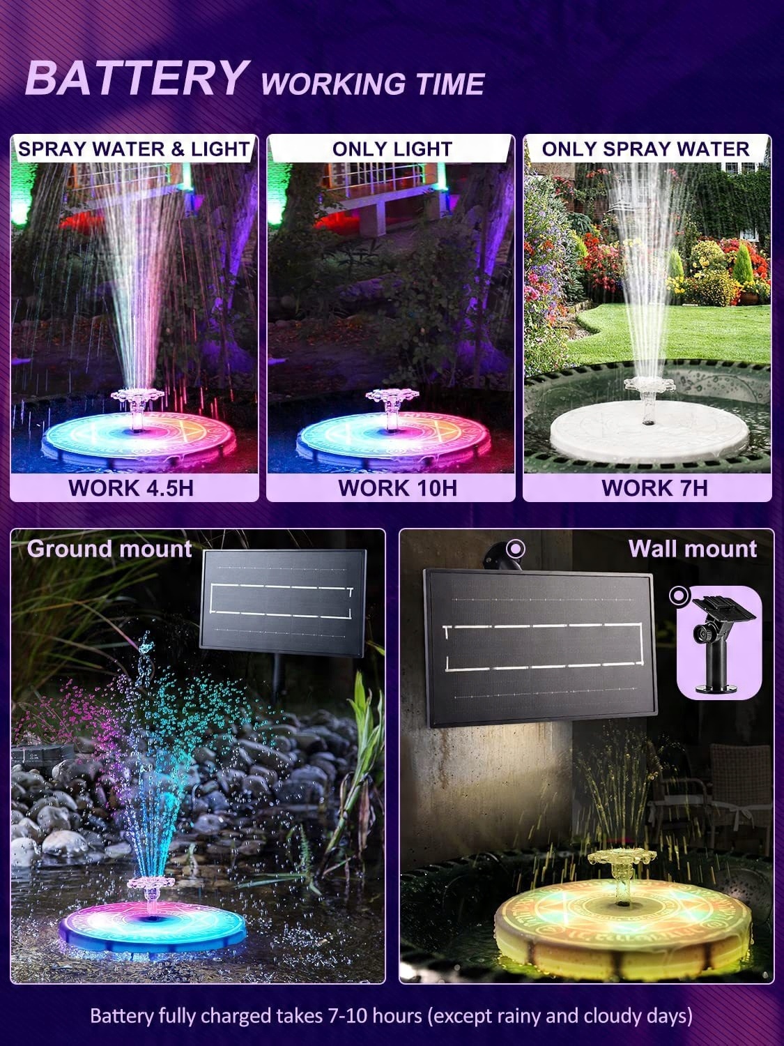 Фонтан солнечного насоса для светодиодного пруда RGB