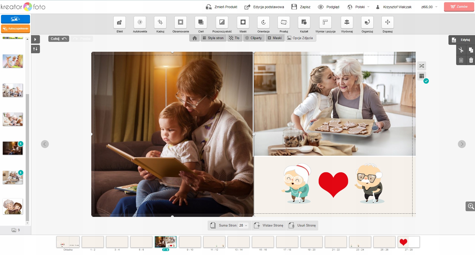 • Полная свобода в оформлении альбома — выбирайте из множества подготовленных стилей страниц и интересных дополнений, которые разнообразят ваш дизайн.