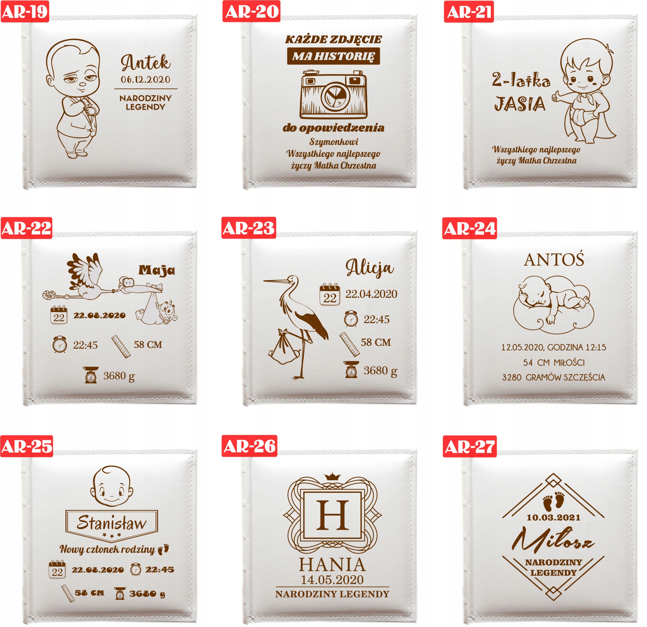 укажите номер дизайна (расположенный в верхнем левом углу каждого узора в красном прямоугольнике), который вы выбираете для альбома, а также текст, который будет выгравирован на каждом узоре.