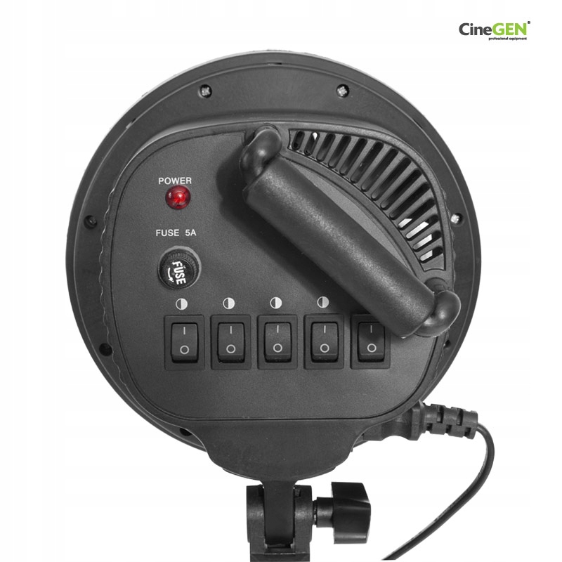 В комплект входит кабель питания. Устройство имеет предохранитель. Софтбокс рассчитан на работу с пятью лампочками максимальной мощностью 85 Вт каждая. Софтбокс позволяет осуществлять ступенчатую регулировку мощности путем включения/выключения каждой лампочки (0-20%-40%-60%-80%-100%).Комплект крепится к осветительным стойкам с помощью встроенной ручки, позволяющей осуществлять любое регулировка угла наклона.