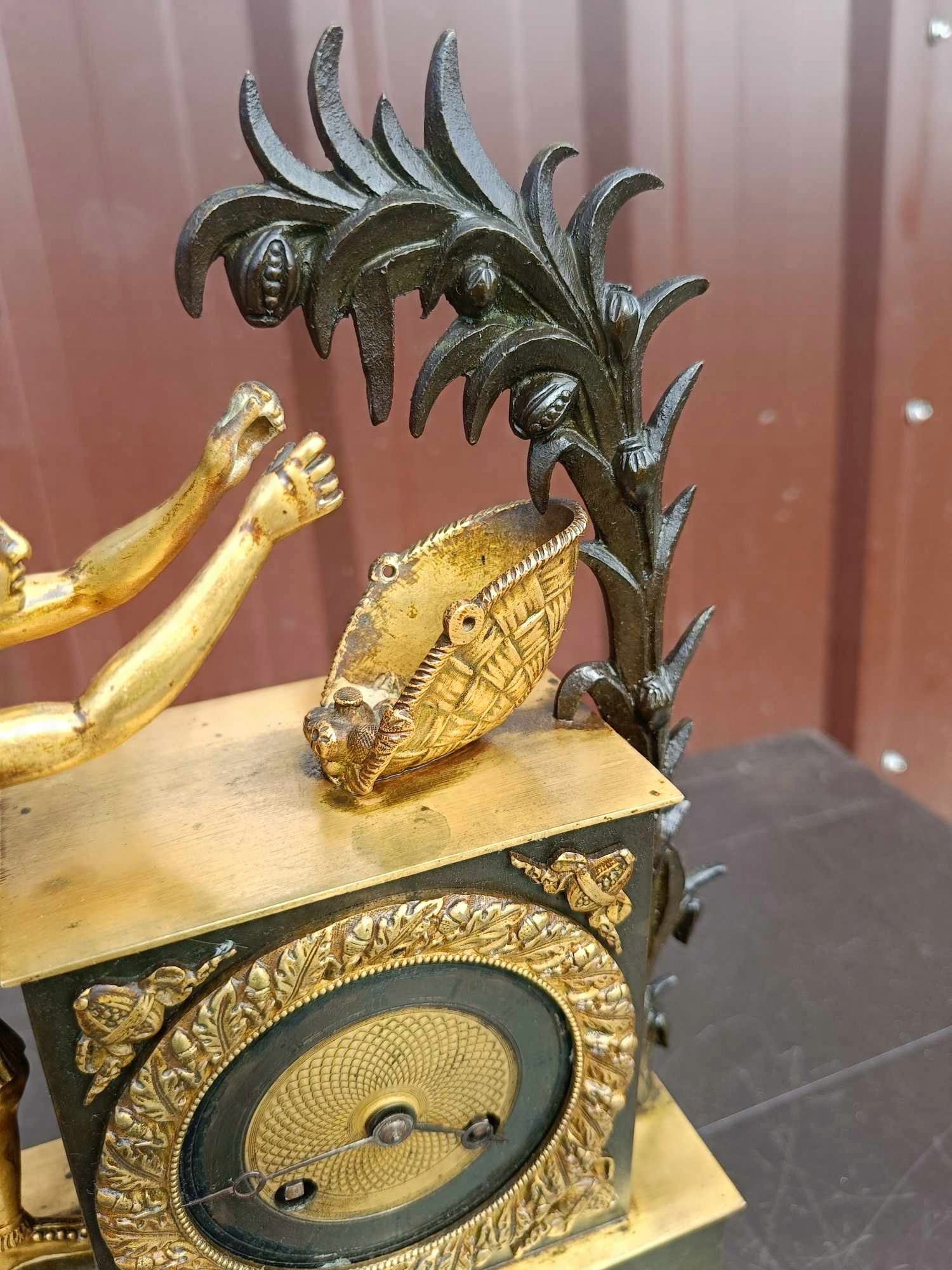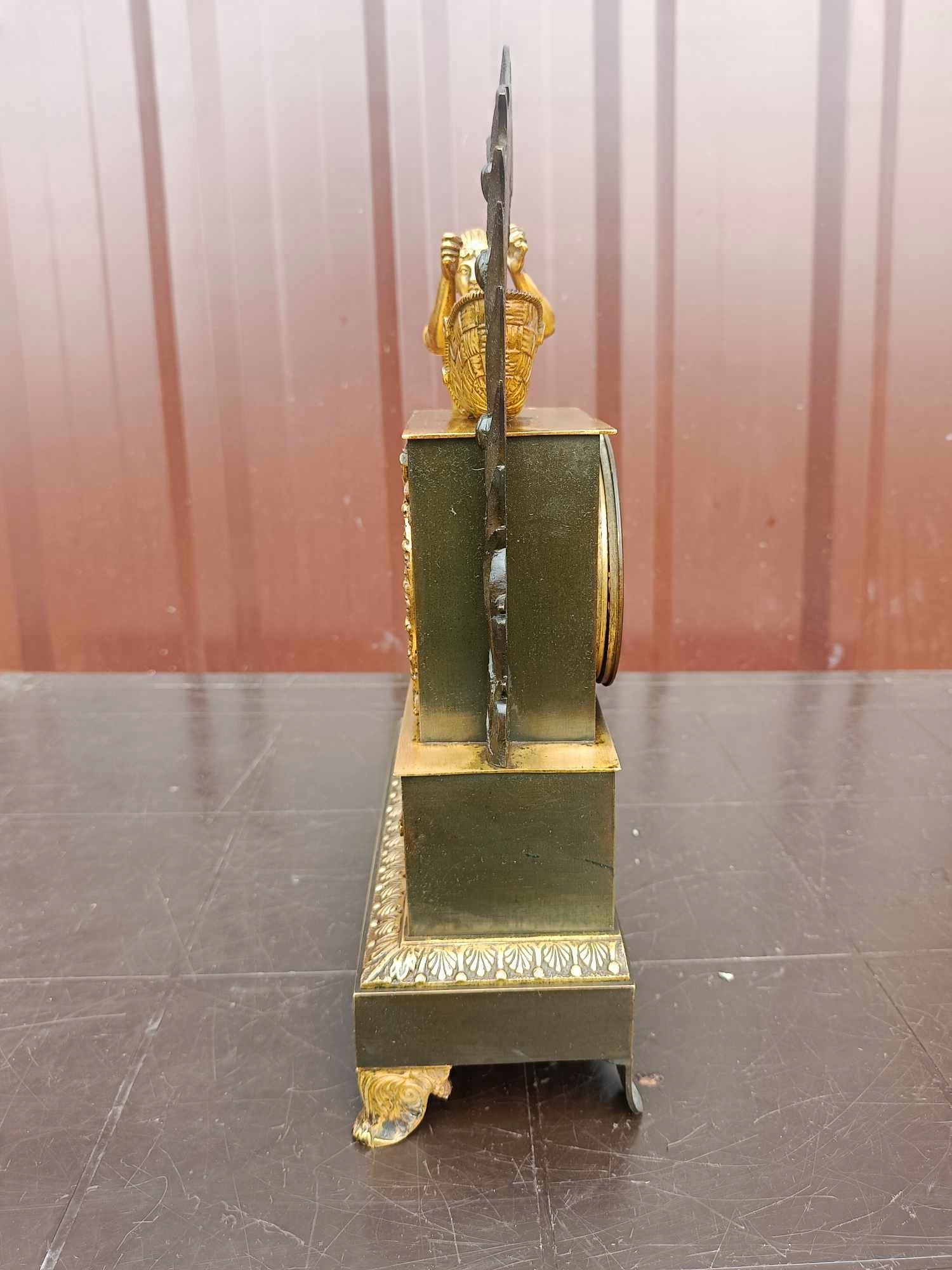 Я продаю очень красивые каминные часы в стиле ампир из моей собственной коллекции, на которых изображена девушка, тянущаяся к корзине, лежащей над механизмом.