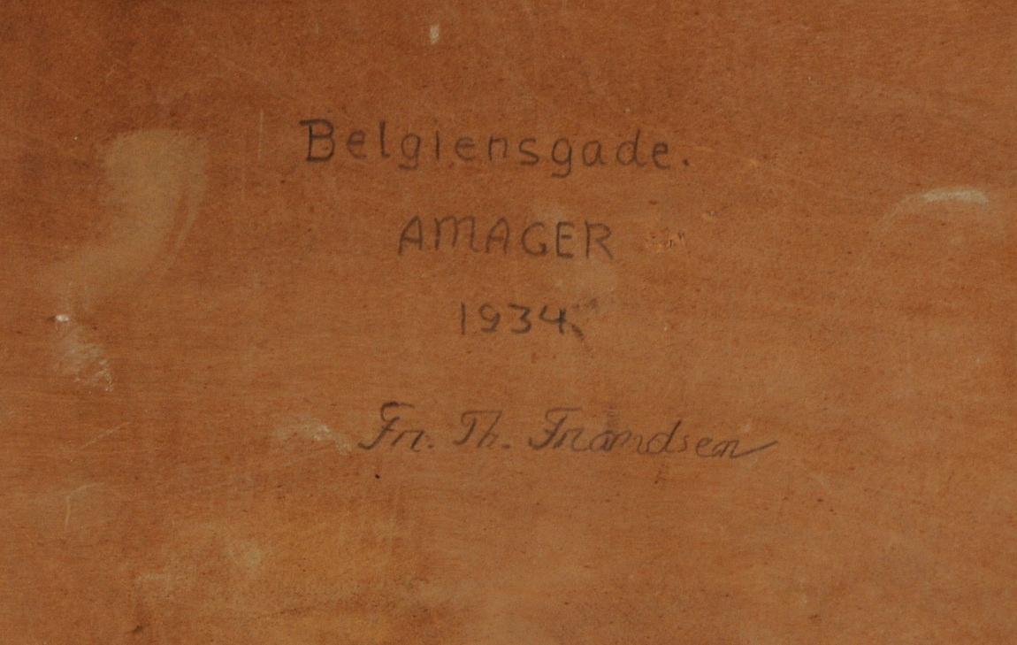- В левом нижнем углу подпись Художника - Бр. Франдсен (Frands Frandsen), также подписанный в этом году на обороте.