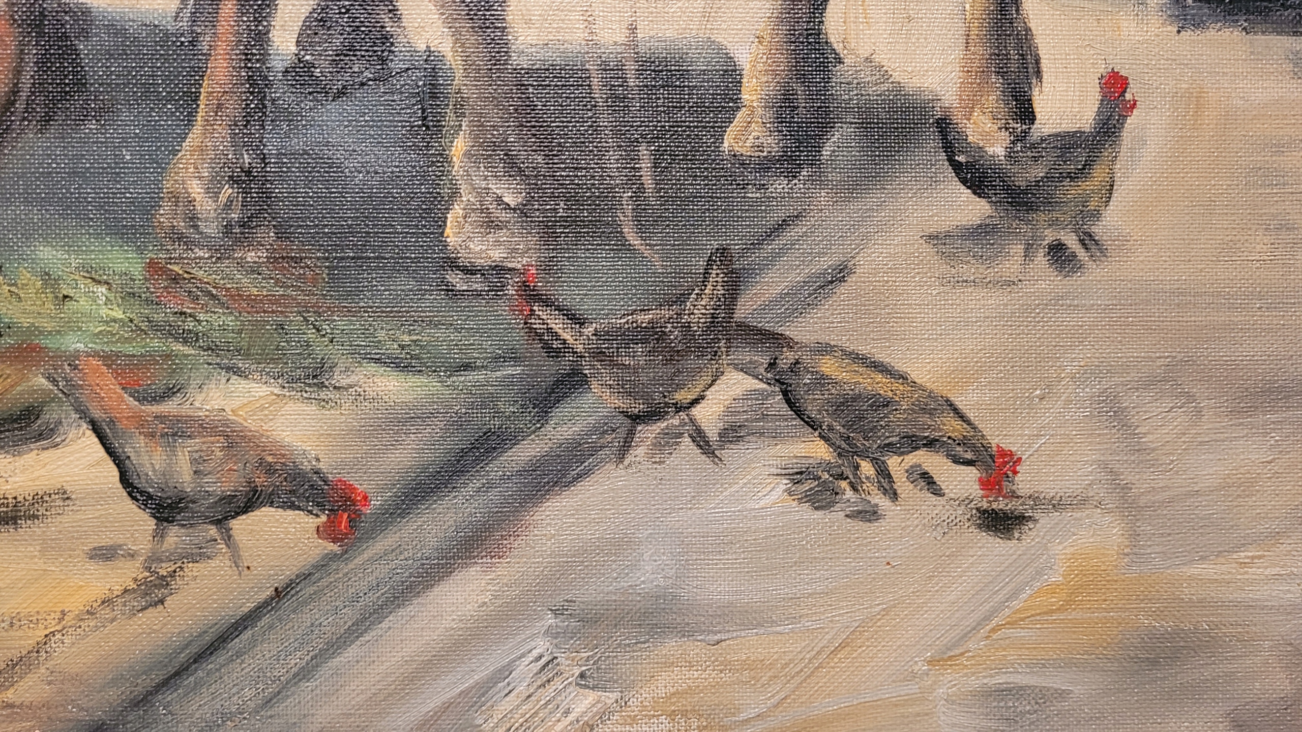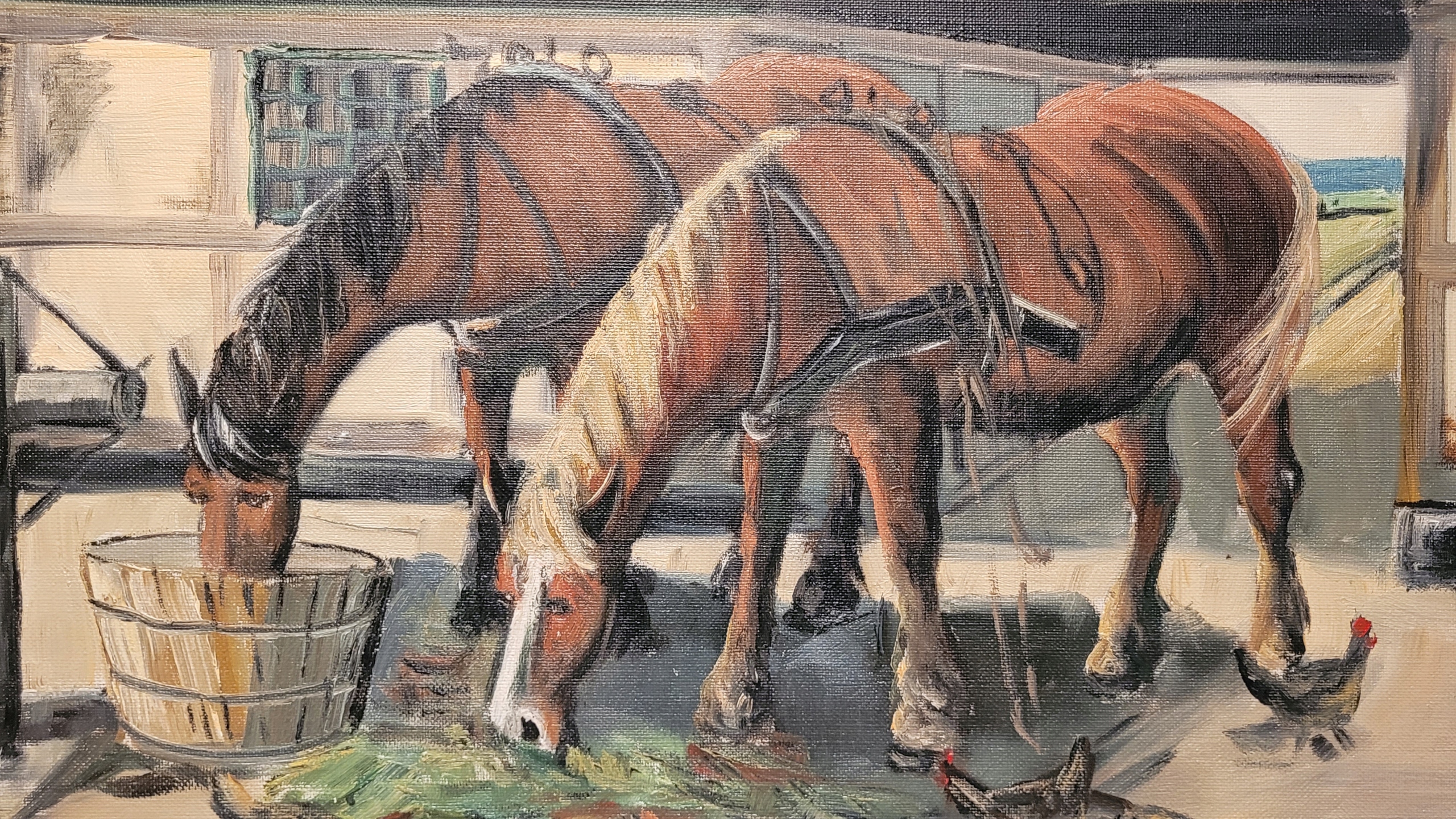 Объект продажи - красивая старая нефтяная картина «лошади и чантерлел».