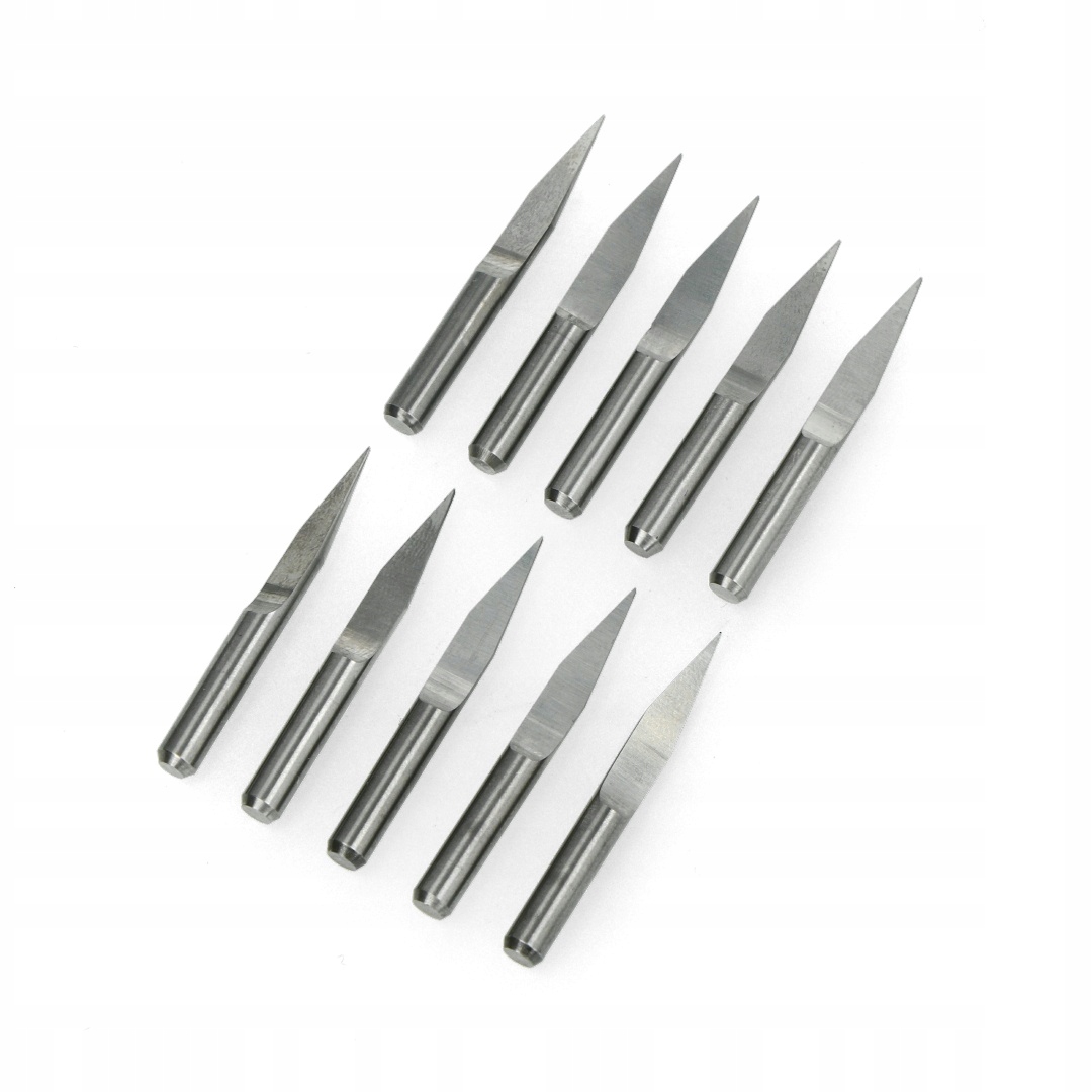Фреза V 20° диаметром 0,2 мм. Используется в фрезерных станках с ЧПУ. Изделие изготовлено из устойчивой к изгибу вольфрамовой стали с повышенной износостойкостью. Дополнительно он покрыт слоем титана. Фрезы применяются во многих областях промышленности, в том числе: в электронике для сверления печатных плат. Их также можно использовать для резки ПВХ, меди, алюминия, дерева и ДВП. Товар продается по 10 штук в пластиковом кейсе для удобства хранения. Каждое лезвие защищено резиновым колпачком.