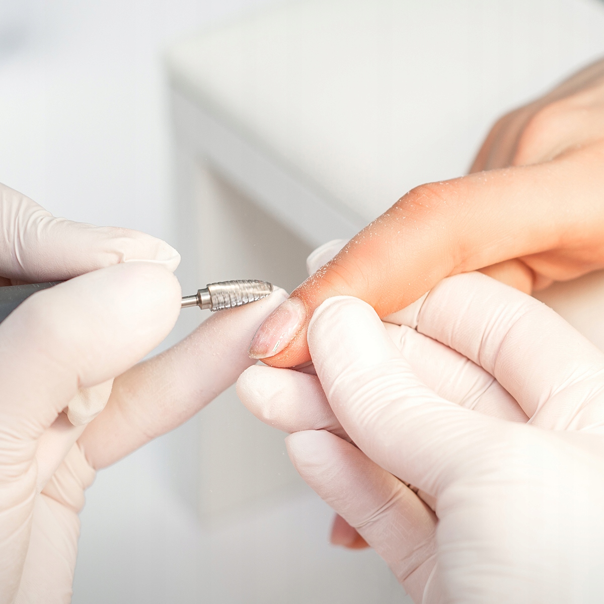 ➡️ Аккуратно поместите фрезу на ногтевую пластину и делайте плавные движения от кутикулы к кончику ногтя, чтобы снять слои маникюра. Контролируйте давление на ноготь.
