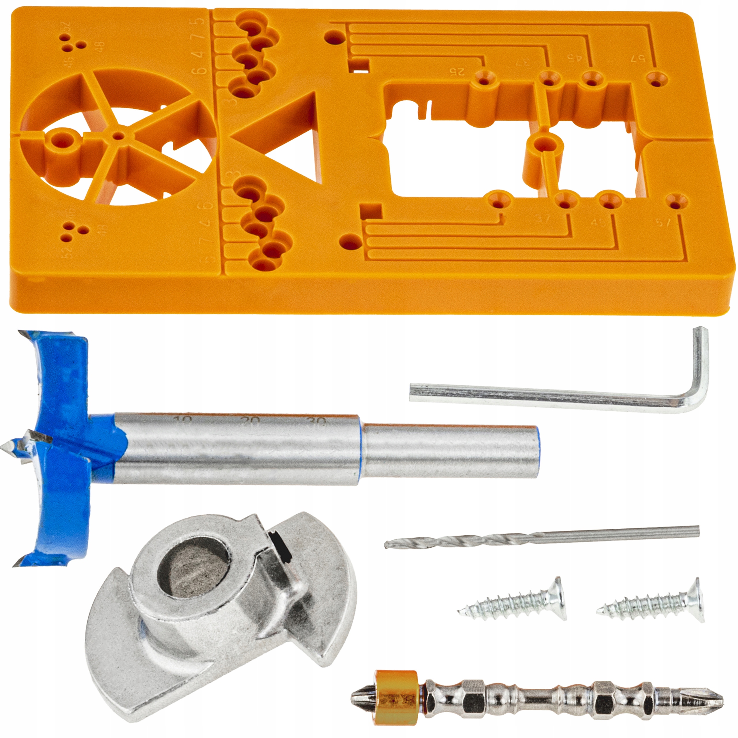 ФРЕЗЕР РЕГУЛЬОВАНИЙ ДЛЯ ПЕТЕЛЬ 35ММ З НАПРАВЛЯЮЧОЮ + ШАБЛОН