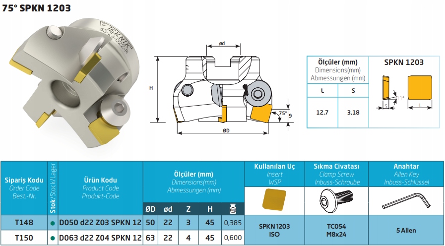 НАВЕСНАЯ ФРЕЗЕРНАЯ ГОЛОВКА FI 50x22 Z-3 ДЛЯ ПЛАСТИН SPKN 1203 T148