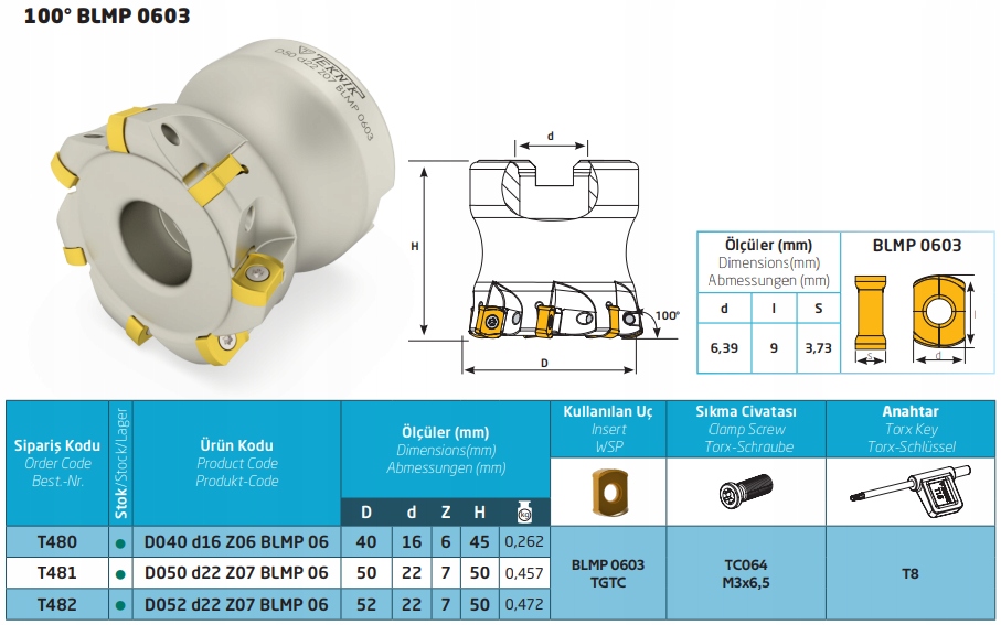ФРЕЗЕРНАЯ ГОЛОВКА FI 50x22 Z7 ДЛЯ BLMP 0603 С ВНУТРЕННИМ ОХЛАЖДЕНИЕМ T481-1