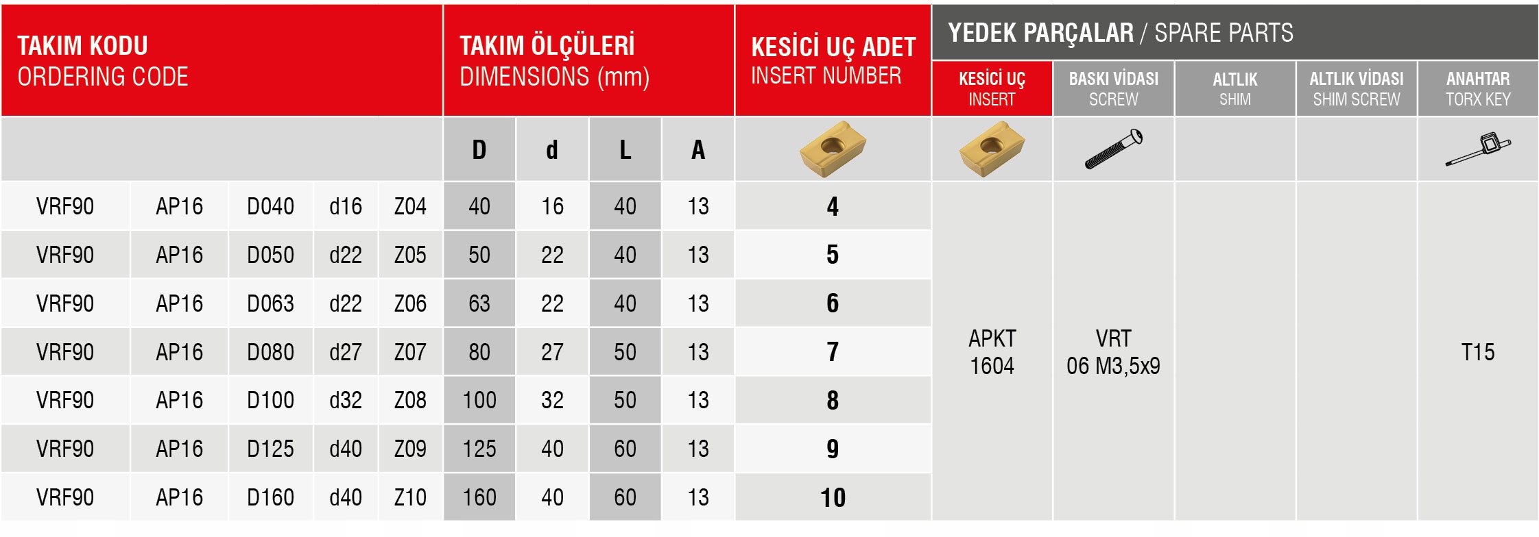 ГОЛОВКА ФРЕЗЕРНАЯ ФРЕЗЕРНАЯ VRF90 D 63 d 22 Z06 APKT 16