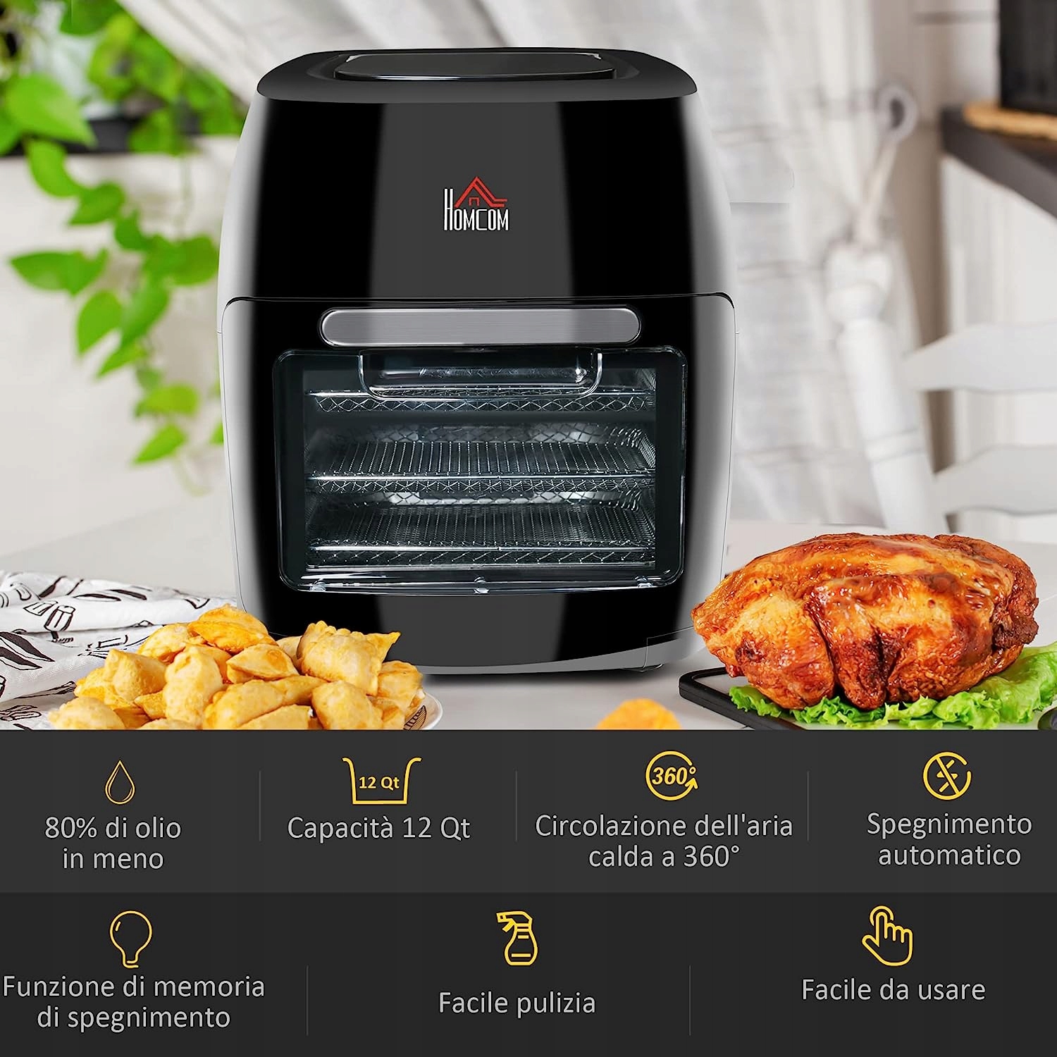 Вы хотите насладиться любимой жареной едой, но хотите вести более здоровый образ жизни? Специально для вас HOMCOM подготовила фритюрницу 4-в-1. Наслаждайтесь завтраком, обедом и ужином, выбирая между жарением, грилем, запеканием и сушкой. Используйте верхний светодиодный дисплей для просмотра программируемого меню, и если вы не уверены в температуре и времени приготовления, фритюрница сделает это за вас. Не отказывайтесь от своих любимых блюд с этой безмасляной фритюрницей HOMCOM.