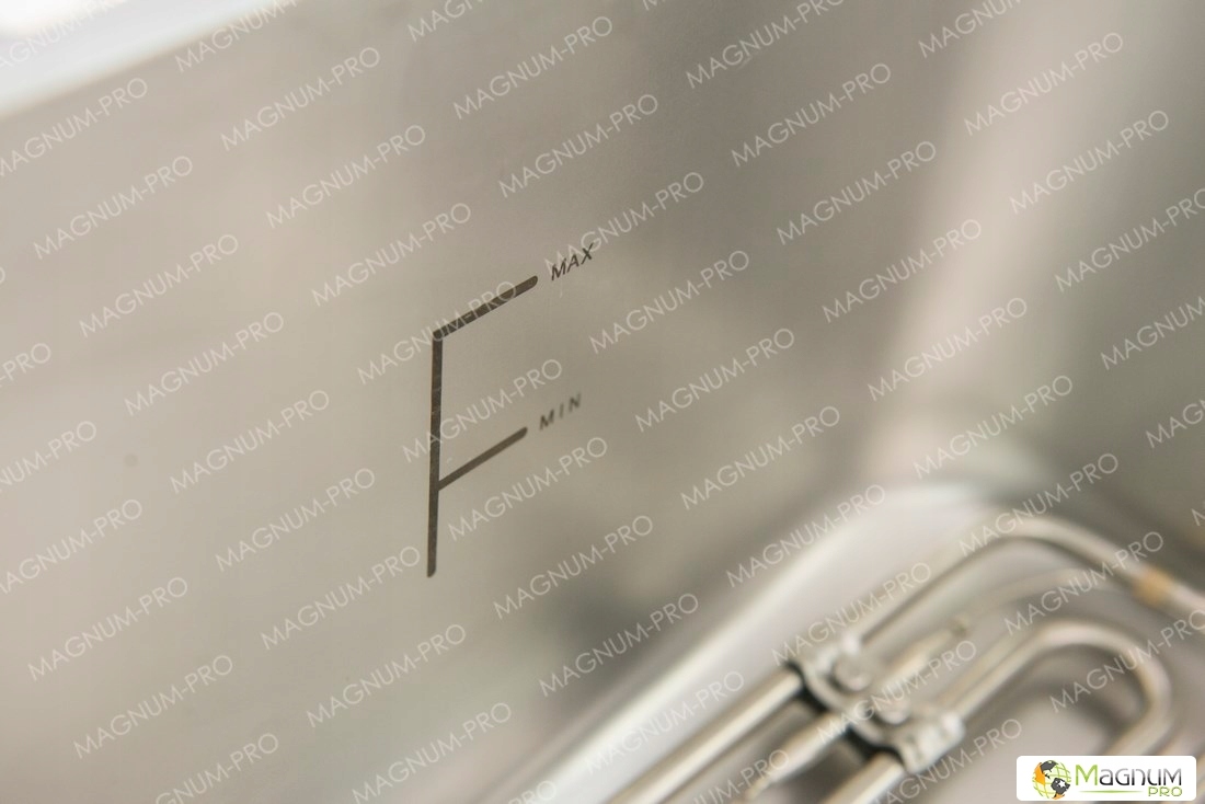 Камера изготовлена из высококачественной нержавеющей стали, что делает ее устойчивой к коррозии и механическим повреждениям. Его объем составляет 13 л, высота — 200 мм. На стене имеется шкала, на которой указан минимальный и максимальный залив масла. В каждую камеру заливайте максимум около 8 литров масла.