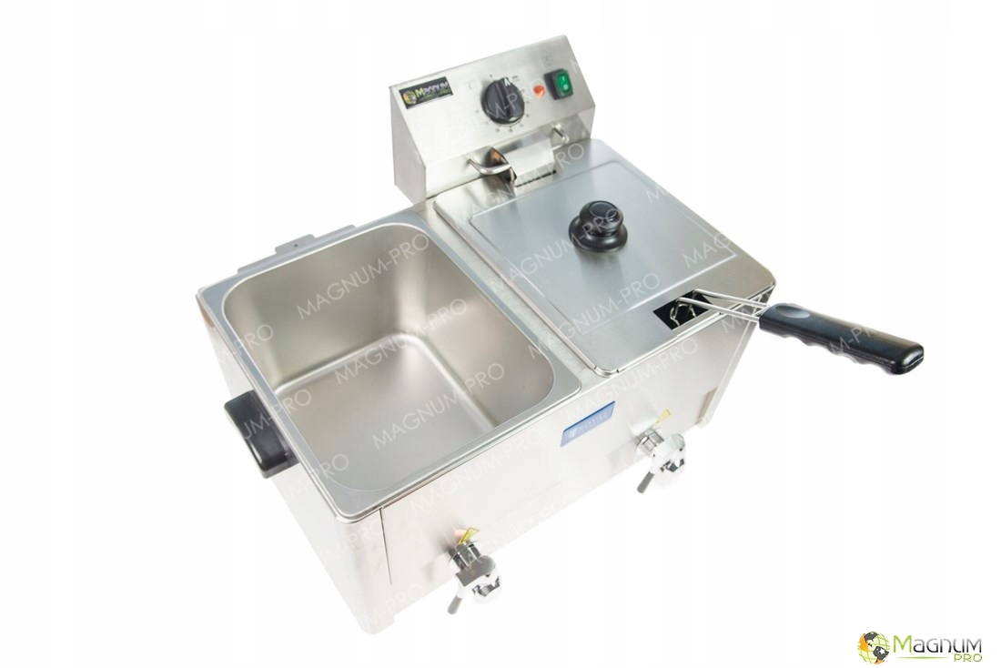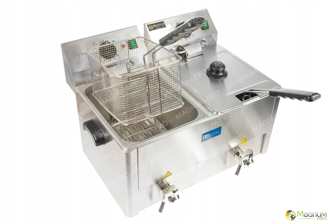 Электрическая фритюрница 2 x 13 л идеально подходит для жарки картофеля фри в точках общественного питания, имеет две емкости по 13 литров. Работать с этим устройством очень просто и удобно. Просто налейте масло в прибор, включите его и установите желаемую температуру. Когда масло достигнет нужной температуры, фритюрница будет поддерживать ее с помощью термостата, и нам останется только вставить корзину с сырым картофелем фри.