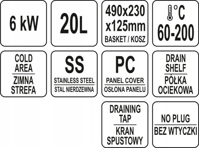 Особенно полезной особенностью фритюрницы YATO является использование так называемой < б>"холодная зона" т.е. расстояние между нагревателем и дном резервуара. Эта функция использует явление, когда тепло, выделяемое нагревателем, поднимается вверх, нагревая масло. Однако температура масла под нагревателем ниже. Благодаря этому крошки и остатки пищи, попадающие на дно резервуара, сохраняются в масле при более низкой температуре и не горят.