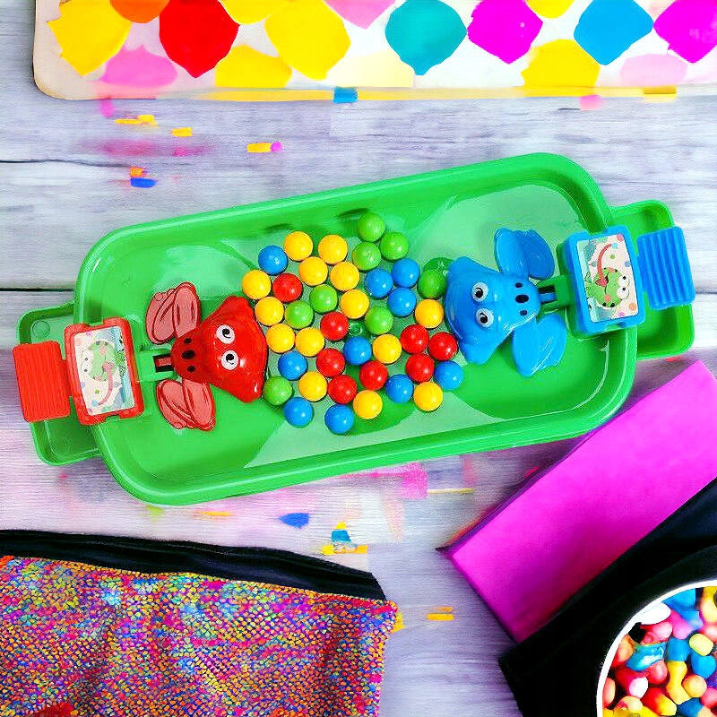 Для игры нужны 2 игрока. Выпустив все шарики, игроки «запускают» своих лягушек. У животных есть рычаг, который при нажатии прыгает - вытягивает лапки и поедает шарики.