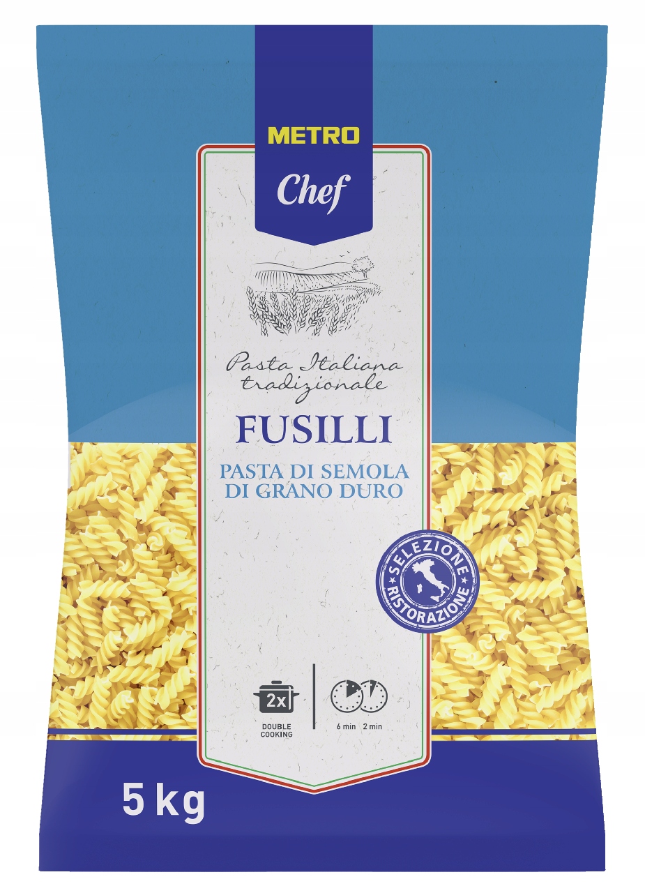 fusilli шеф -повар - универсальный выбор для основных блюд, салатов и запеканков. Благодаря использованию маролиной из твердой пшеницы (Triticum durum) после приготовления, паста сохраняет свою эластичность и идеальную структуру - она не переоценка и идеально поглощает соусы.