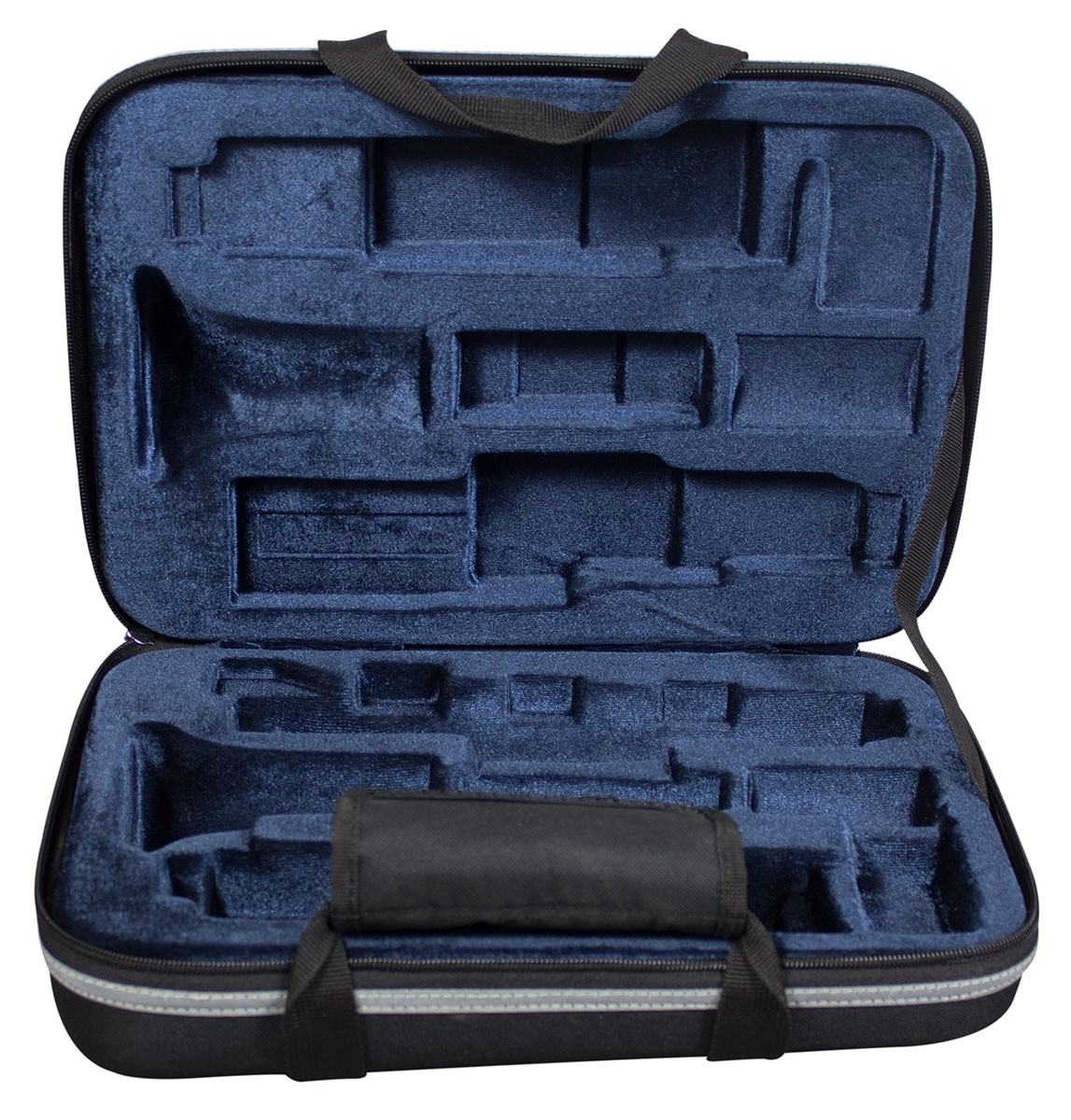 Чёрный футляр для кларнета, обеспечивающий высокую защиту инструмента, вес 0,85 кг. Чехол имеет водонепроницаемое покрытие Cordura на поверхности, ручку, светоотражающие элементы, большой карман и возможность ношения на плече. Корпус изготовлен из литого под давлением корпуса, внутри обивка из синего бархата. Отдельные зоны для отдельных частей инструмента. И чехол, и карман закрываются на качественные молнии. Подходит для стандартных кларнетов Boehm во французском стиле (вариант этого футляра CHCCLAR1 был разработан специально для кларнетов дизайна Buffet B12).