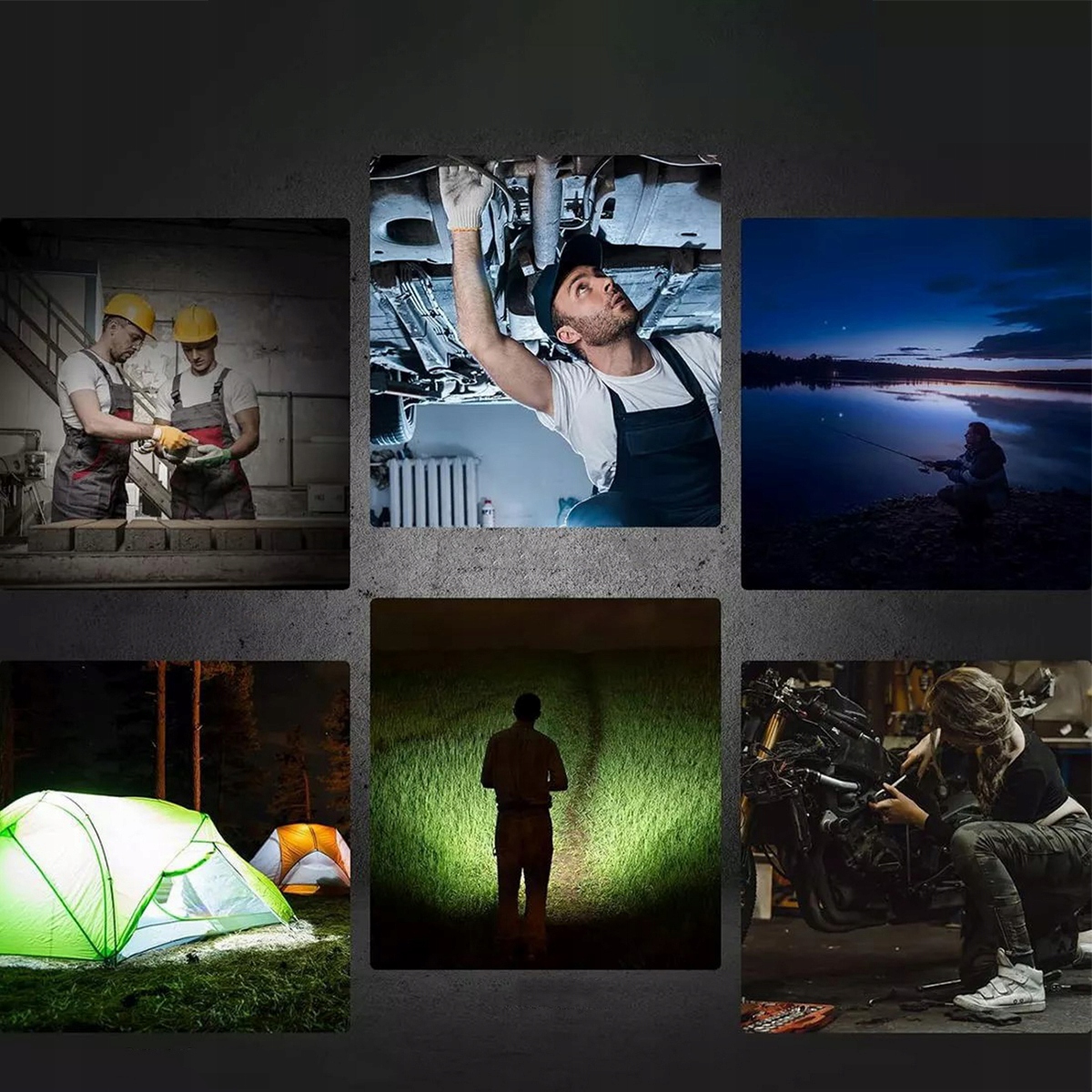 Угол головки фары может быть отрегулирован в диапазоне 180 градусов, что идеально подходит для строительных площадок, на открытом воздухе, лагерях, пеших прогулок, технического обслуживания транспортных средств и многих других ситуаций, обеспечивающих эффективное и надежное осветительное решение.