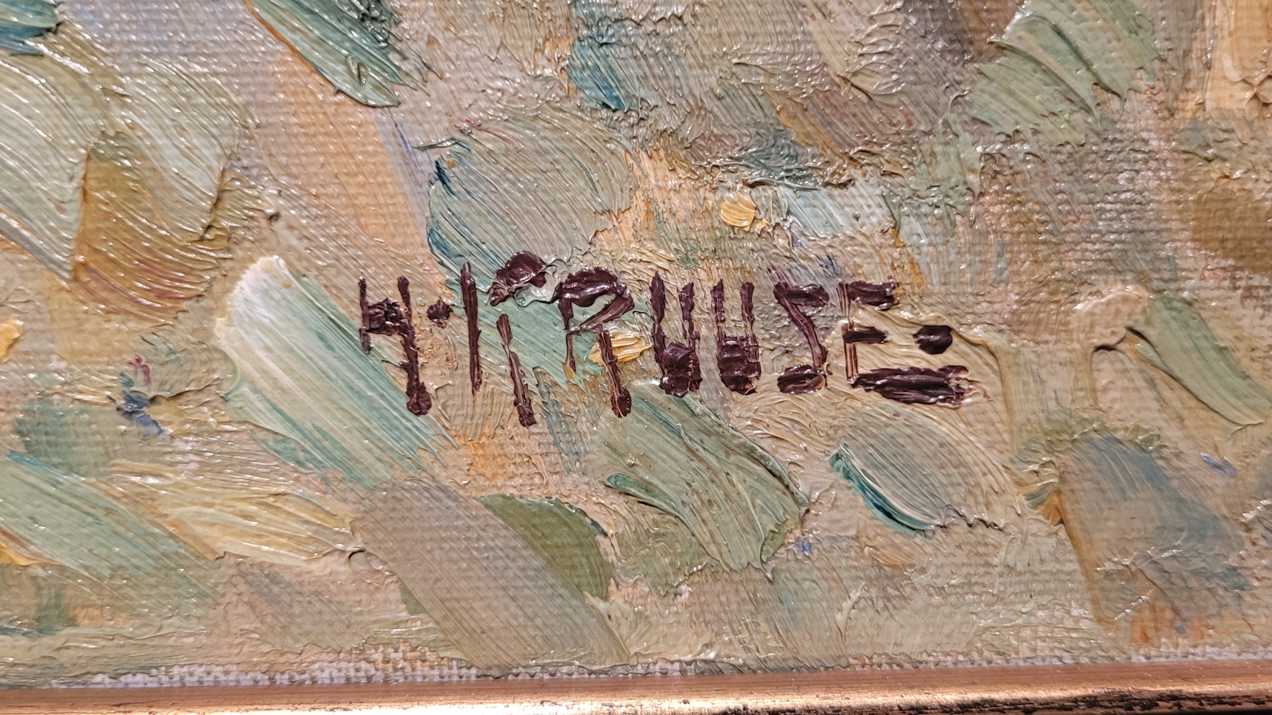 В правом нижнем углу есть подпись художника - h.kruuse. 1964) - хорошо известный и уважаемый датский художник. Перечислены в Arcadja, Findartinfo, ArtPrice и многих других порталах и аукционных домах в мире.