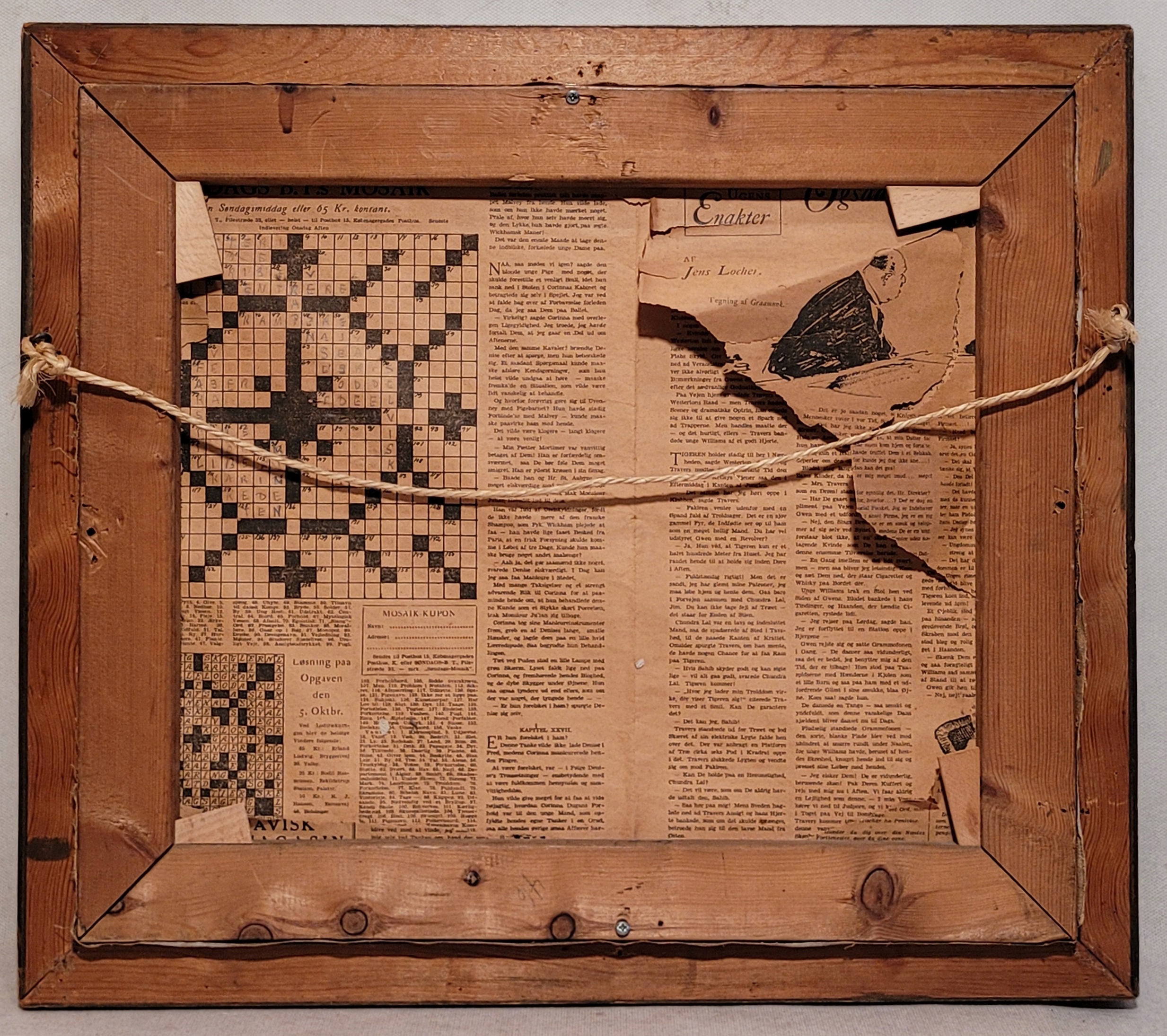 Работа с душой, обрамленная в деревянной раме.
