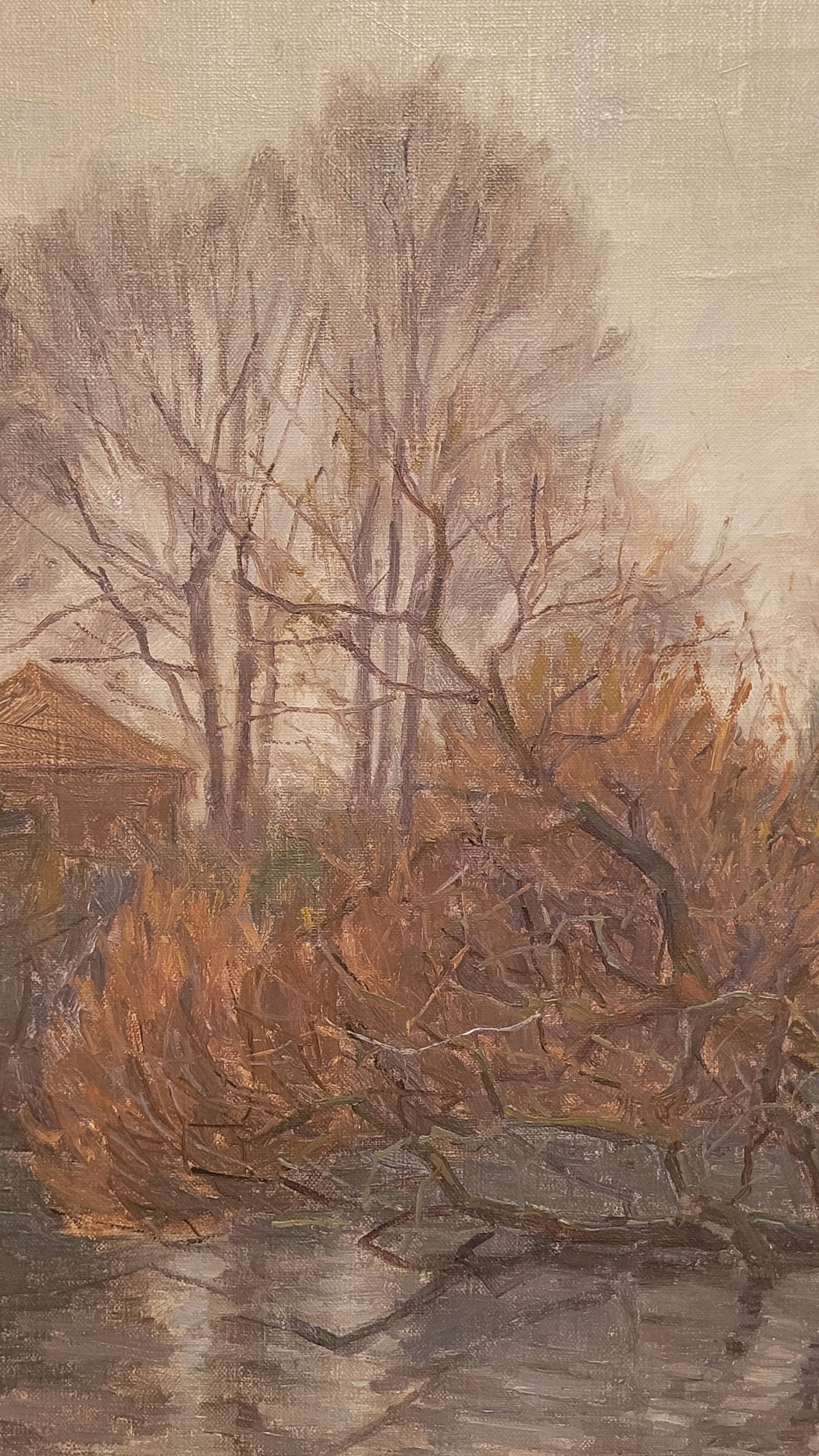 Ганс Ниссен Хансен Аллинг (1890 - 1971) - «Дом на реке», нефтяная картина.