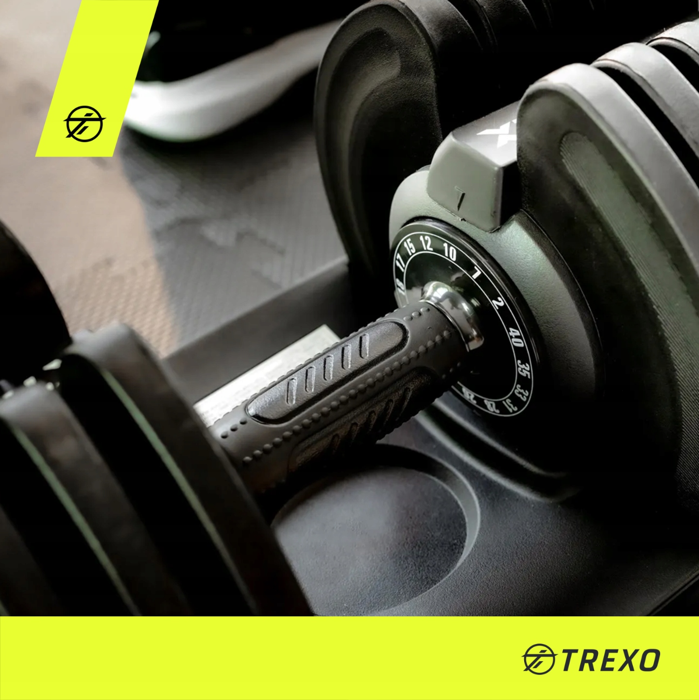 Одним из важнейших преимуществ гантелей TREXO является инновационная система регулировки нагрузки. Благодаря ручке, расположенной в ручке, пользователь может быстро и легко отрегулировать вес под свои нужды, не снимая пластины с шеи. Просто поместите гантель на специальную подставку, поверните ручку, чтобы выбрать подходящий вес, и поднимите снаряд. Такое решение не только экономит время, но и позволяет плавно переходить между различными упражнениями, что особенно важно при круговых и интервальных тренировках.
