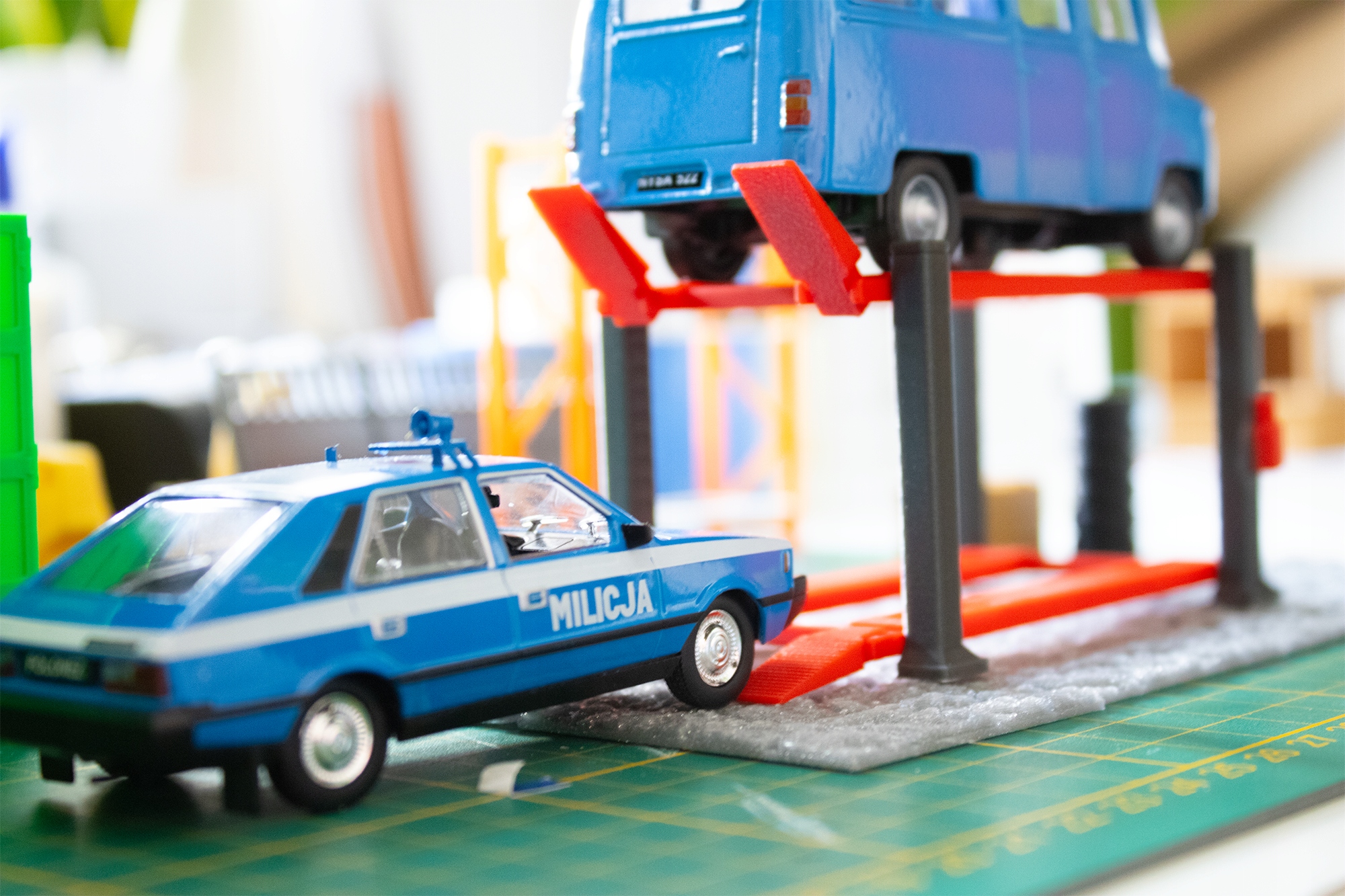 Гараж на дві машини з рухомими елементами. Модельна діорама в масштабі 1:43