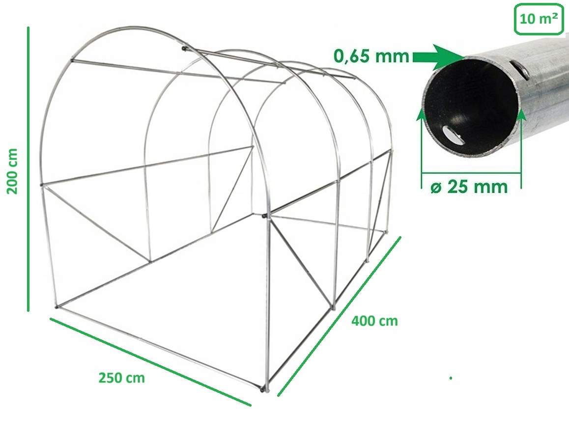 Садовая туннельная теплица 4х2,5 млн. 10 м2 Трубки 25 мм аксессуары